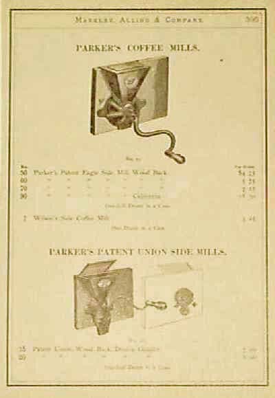 Alling and Co., containing engraved images of two hand-cranked coffee