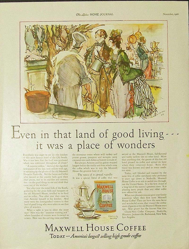 1927 Color Maxwell House Coffee advertisement featured in Ladies' Home