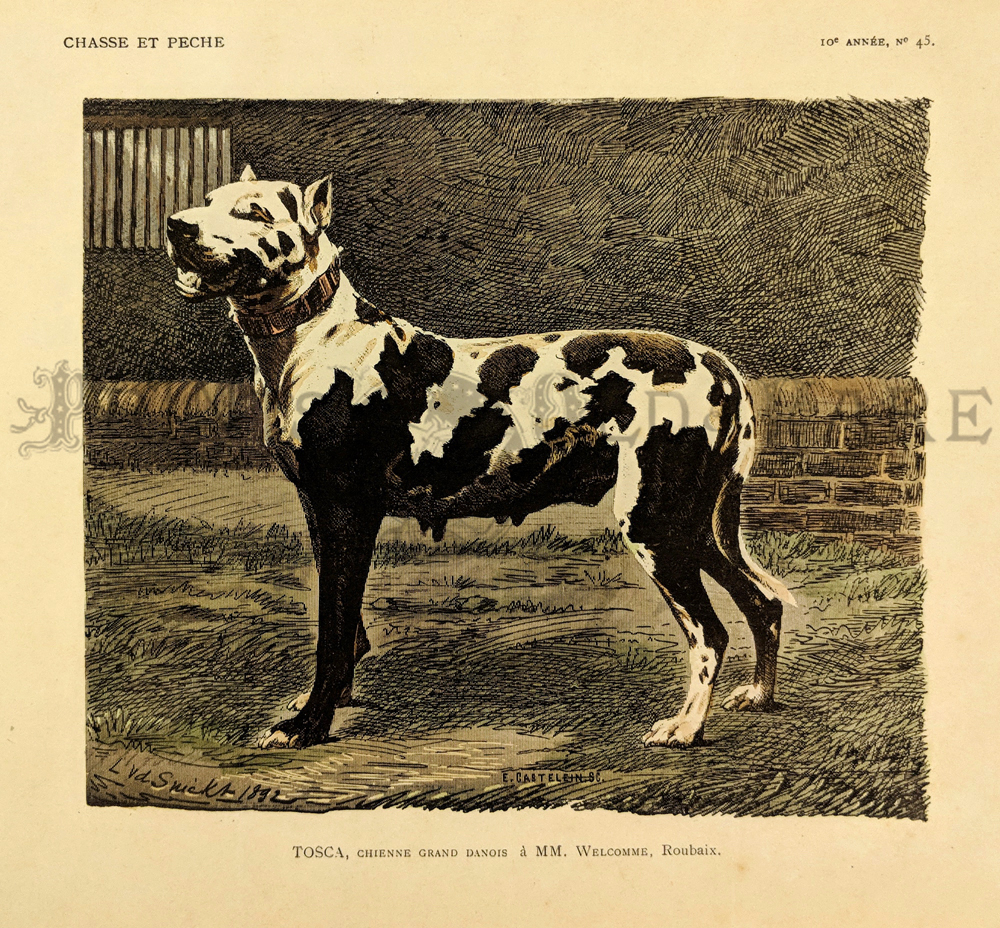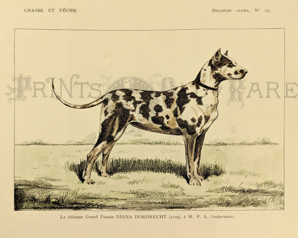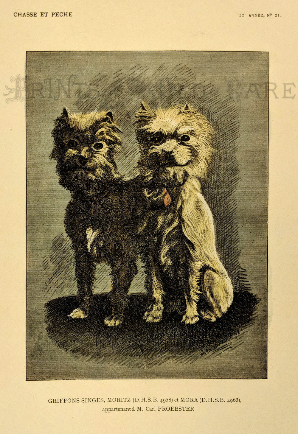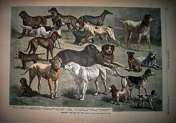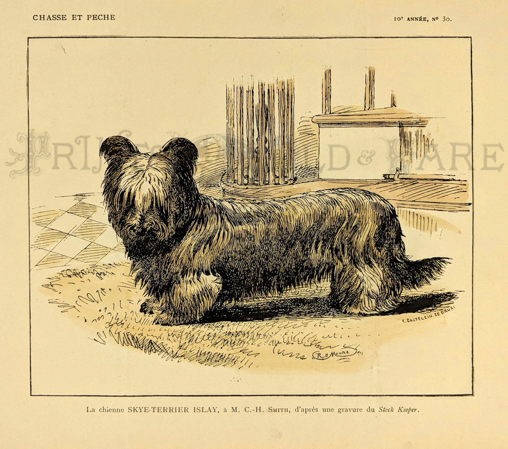 ![]() 066dog: 1894 Fox Terrier "Le Fox-Terrier." Hand colored wood engraving. 8 1/2 x 7 1/2 in. image size $60 ![]() 067dog: 1893 Spitz "Brave Spitz." Hand colored wood engraving. 9 x 7 1/2 in. image size $60 ![]() 068dog: c.1890 Belgian Sheep Dog "Berger Belge." Hand colored wood engraving. 11 x 7 1/2 in. image size $60 ![]() 069dog: 1892 Sheep Dog "Chien de Berger." Hand colored wood engraving. 11 x 7 1/2 in. image size $60 ![]() 070dog: 1892 Saint Bernard "Le Saint-Bernard Royal." Hand colored wood engraving. 11 x 7 1/2 in. image size $60 ![]() 071dog: 1892 Griffons "Griffons Singes." Hand colored wood engraving. 10 x 7 1/2 in. image size $60 ![]() 072dog: 1894 Morkshire Terrier "La chinenne Yorkshire-Terrier." Hand colored wood engraving. 11 x 7 1/2 in. image size $60 ![]() 073dog: 1892 Bloodhound "Le Bloodhound Champion Cromwell." Hand colored wood engraving. 8 x 8 in. image size $60 ![]() 074dog: 1894 Fox Terrier "Despoiler, fox-terrier." Hand colored wood engraving. 7 1/2 x 8 in. image size $60 ![]() 075dog: 1892 Pomeranians "Les Loulous de Pomeraine." Hand colored wood engraving. 8 x 8 in. image size $60 ![]() 076dog: 1899 Pointer "Le Pointer." Hand colored wood engraving. 10 x 8 in. image size $60 ![]() 077dog: 1892 Walker Hound "Braque De Race Continentale." Hand colored wood engraving. 10 x 8 in. image size $60 ![]() 078dog: 1894 Fox Terrier. Hand colored wood engraving. 10 x 8 in. image size $60 ![]() 079dog: 1892 Skye Terrier "Skye-Terrier Islay." Hand colored wood engraving. 8 1/2 x 8 in. image size $60 ![]() 080dog: 1892 English Sheep Dog "chien Berger anglais à queue courte." Hand colored wood engraving. 9 x 8 in. image size $60 ![]() 081dog: 1892 Pomeranian "Les Loulous de Pomeraine." Hand colored wood engraving. 11 x 8 in. image size $60 ![]() 082dog: 1893 Border Collie "Chien de Berger de Beauce." Hand colored wood engraving. 9 1/2 x 8 in. image size $60 ![]() 083dog: c.1890 Great Dane "Chienne Grand Danois." Hand colored wood engraving. 9 x 8 1/2 in. image size $60 ![]() 084dog: 1893 Fox Terrier "Le Fox-Terrier Valentinus." Hand colored wood engraving. 8 x 7 1/2 in. image size $60 ![]() 085dog: 1893 Sheep Dog "Chien de Berger Russe." Hand colored wood engraving. 9 x 8 in. image size $60 ![]() 086dog: 1892 Pekingese "La chienne Zwergspitz." Hand colored wood engraving. 9 1/2 x 8 in. image size $60 ![]() 087dog: 1893 French Mastiff "dogue de Bordeaux." Hand colored wood engraving. 11 x 8 in. image size $60 ![]() 088dog: 1894 Dachshunds "Les Dachsunde Longine." Hand colored wood engraving. 8 x 7 in. image size $60 ![]() 089dog: 1894 Great Dane "La chienne Grand Danois." Hand colored wood engraving. 9 x 7 in. image size $60 ![]() 090dog: Police Dog & Belgian Shepherd. c.1920 6 ¾ x 9 5/8 in. $30 ![]() 091dog: Lady Tennyson, and the Poet’s Old Wolf-Hound Karenia. 1899 Harper’s Bazar. Half-tone print. 10 1/8 x 15 ¾ in. $30 ![]() 092dog: Cape Thous-dog - Lizars SC. 1840. Copper engraving. 3 ¾ x 6 ½ in. $40 ![]() 093dog: New Holland Dingo – Plate 10. H. Smith Del. 1840. Copper engraving. 3 7/8 x 6 3/8 in. $40 ![]() 094dog: The Esquimaux Dog – Plate 2. Col. H. Smith. Delt. 1843. Copper engraving. 4 x 6 5/8 in. $40 ![]() 095dog: Scenes of the Fourth Annual Bench Show of Dogs at the Madison Square Garden, with some of the Principal Prize Winners. 1880 The New York Illustrated Times. Hand colored, wood engraving. 16 x 21 ¼ in. $150 |