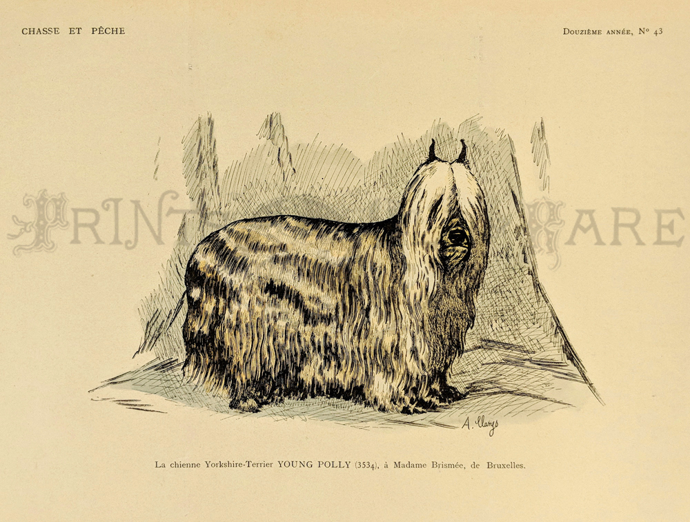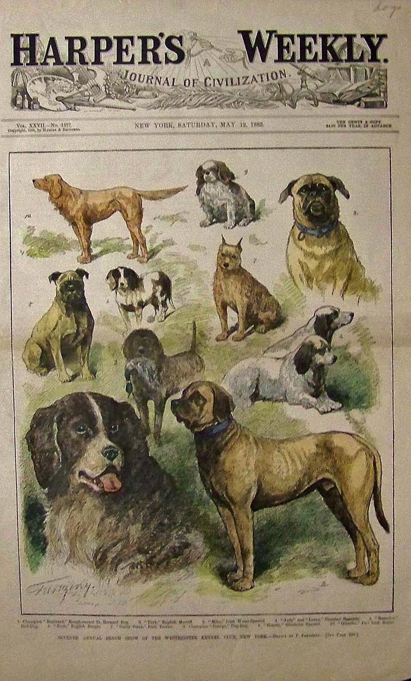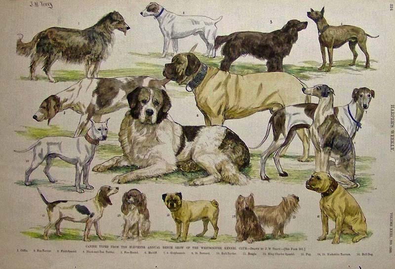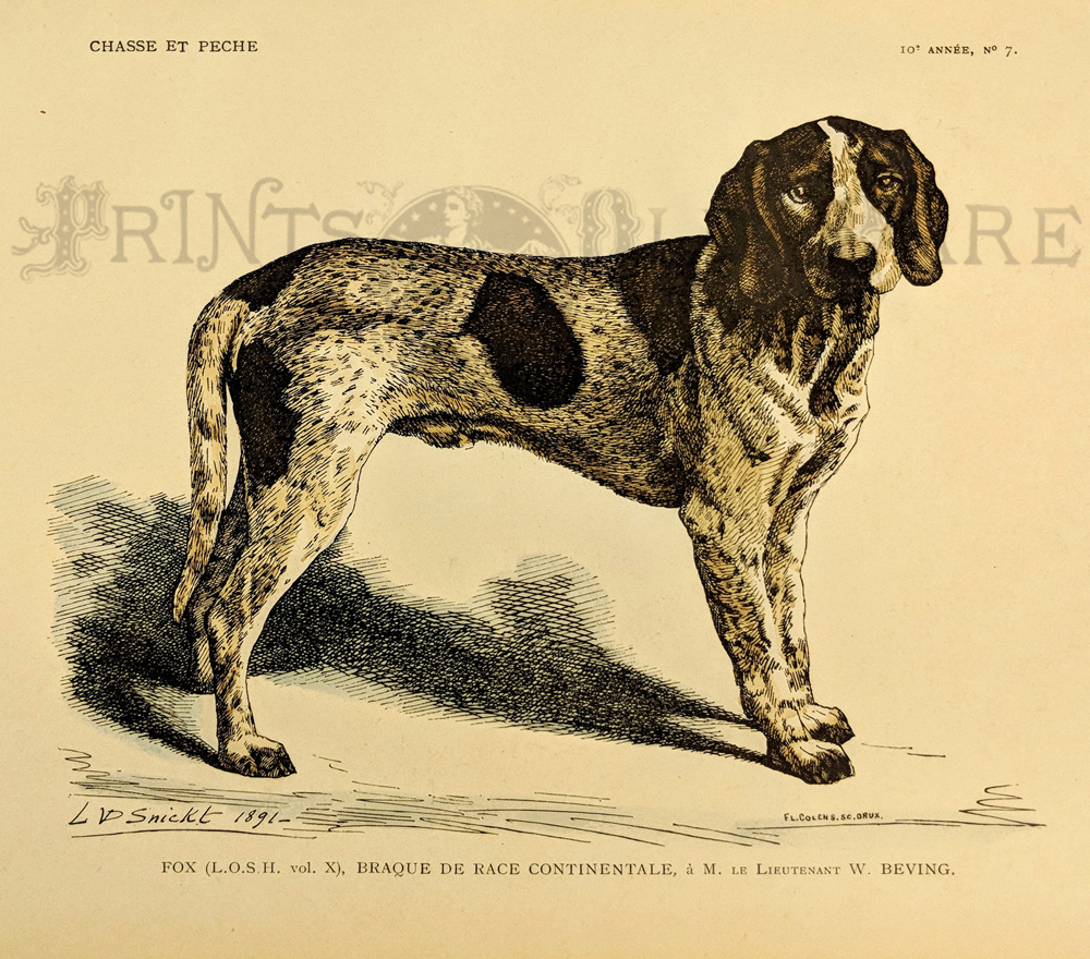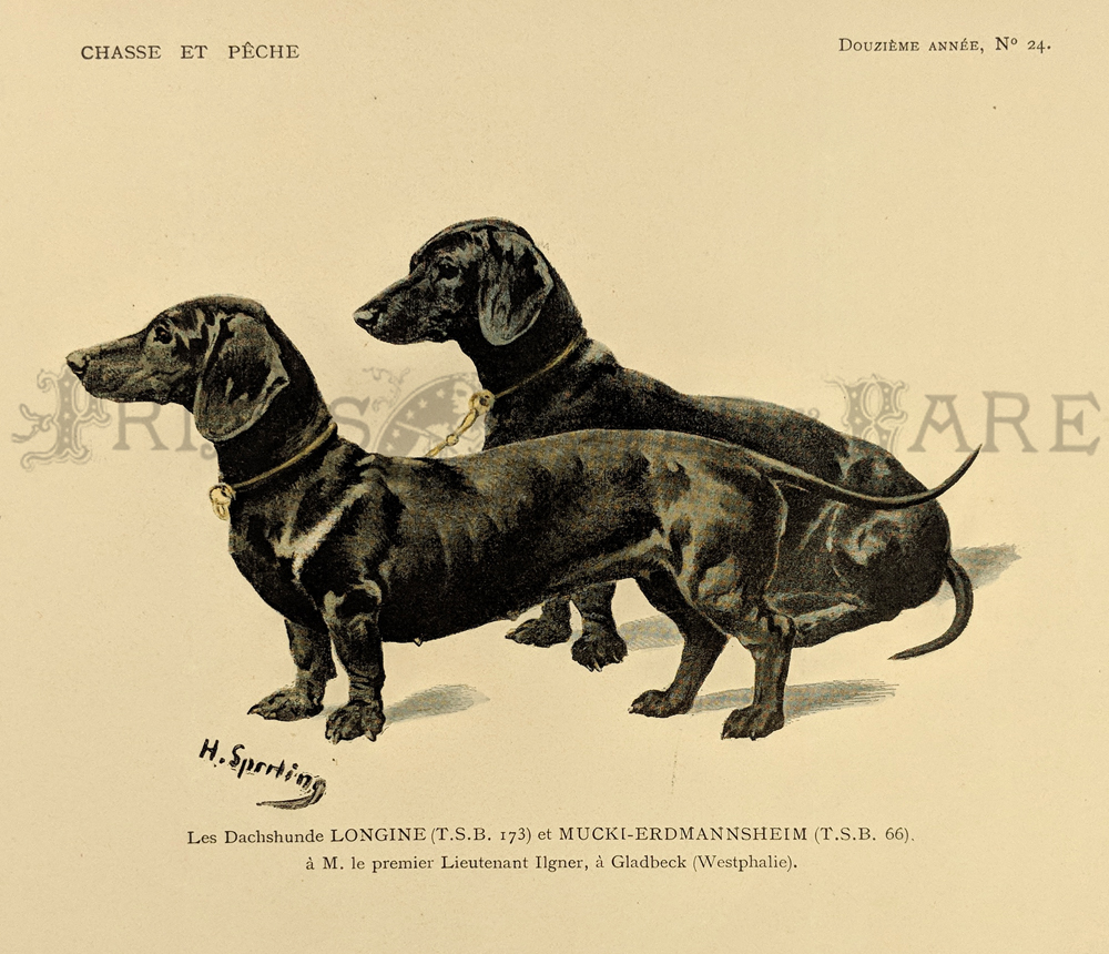 ![]() 066dog: 1894 Fox Terrier "Le Fox-Terrier." Hand colored wood engraving. 8 1/2 x 7 1/2 in. image size $60 ![]() 067dog: 1893 Spitz "Brave Spitz." Hand colored wood engraving. 9 x 7 1/2 in. image size $60 ![]() 068dog: c.1890 Belgian Sheep Dog "Berger Belge." Hand colored wood engraving. 11 x 7 1/2 in. image size $60 ![]() 069dog: 1892 Sheep Dog "Chien de Berger." Hand colored wood engraving. 11 x 7 1/2 in. image size $60 ![]() 070dog: 1892 Saint Bernard "Le Saint-Bernard Royal." Hand colored wood engraving. 11 x 7 1/2 in. image size $60 ![]() 071dog: 1892 Griffons "Griffons Singes." Hand colored wood engraving. 10 x 7 1/2 in. image size $60 ![]() 072dog: 1894 Morkshire Terrier "La chinenne Yorkshire-Terrier." Hand colored wood engraving. 11 x 7 1/2 in. image size $60 ![]() 073dog: 1892 Bloodhound "Le Bloodhound Champion Cromwell." Hand colored wood engraving. 8 x 8 in. image size $60 ![]() 074dog: 1894 Fox Terrier "Despoiler, fox-terrier." Hand colored wood engraving. 7 1/2 x 8 in. image size $60 ![]() 075dog: 1892 Pomeranians "Les Loulous de Pomeraine." Hand colored wood engraving. 8 x 8 in. image size $60 ![]() 076dog: 1899 Pointer "Le Pointer." Hand colored wood engraving. 10 x 8 in. image size $60 ![]() 077dog: 1892 Walker Hound "Braque De Race Continentale." Hand colored wood engraving. 10 x 8 in. image size $60 ![]() 078dog: 1894 Fox Terrier. Hand colored wood engraving. 10 x 8 in. image size $60 ![]() 079dog: 1892 Skye Terrier "Skye-Terrier Islay." Hand colored wood engraving. 8 1/2 x 8 in. image size $60 ![]() 080dog: 1892 English Sheep Dog "chien Berger anglais à queue courte." Hand colored wood engraving. 9 x 8 in. image size $60 ![]() 081dog: 1892 Pomeranian "Les Loulous de Pomeraine." Hand colored wood engraving. 11 x 8 in. image size $60 ![]() 082dog: 1893 Border Collie "Chien de Berger de Beauce." Hand colored wood engraving. 9 1/2 x 8 in. image size $60 ![]() 083dog: c.1890 Great Dane "Chienne Grand Danois." Hand colored wood engraving. 9 x 8 1/2 in. image size $60 ![]() 084dog: 1893 Fox Terrier "Le Fox-Terrier Valentinus." Hand colored wood engraving. 8 x 7 1/2 in. image size $60 ![]() 085dog: 1893 Sheep Dog "Chien de Berger Russe." Hand colored wood engraving. 9 x 8 in. image size $60 ![]() 086dog: 1892 Pekingese "La chienne Zwergspitz." Hand colored wood engraving. 9 1/2 x 8 in. image size $60 ![]() 087dog: 1893 French Mastiff "dogue de Bordeaux." Hand colored wood engraving. 11 x 8 in. image size $60 ![]() 088dog: 1894 Dachshunds "Les Dachsunde Longine." Hand colored wood engraving. 8 x 7 in. image size $60 ![]() 089dog: 1894 Great Dane "La chienne Grand Danois." Hand colored wood engraving. 9 x 7 in. image size $60 ![]() 090dog: Police Dog & Belgian Shepherd. c.1920 6 ¾ x 9 5/8 in. $30 ![]() 091dog: Lady Tennyson, and the Poet’s Old Wolf-Hound Karenia. 1899 Harper’s Bazar. Half-tone print. 10 1/8 x 15 ¾ in. $30 ![]() 092dog: Cape Thous-dog - Lizars SC. 1840. Copper engraving. 3 ¾ x 6 ½ in. $40 ![]() 093dog: New Holland Dingo – Plate 10. H. Smith Del. 1840. Copper engraving. 3 7/8 x 6 3/8 in. $40 ![]() 094dog: The Esquimaux Dog – Plate 2. Col. H. Smith. Delt. 1843. Copper engraving. 4 x 6 5/8 in. $40 ![]() 095dog: Scenes of the Fourth Annual Bench Show of Dogs at the Madison Square Garden, with some of the Principal Prize Winners. 1880 The New York Illustrated Times. Hand colored, wood engraving. 16 x 21 ¼ in. $150 |