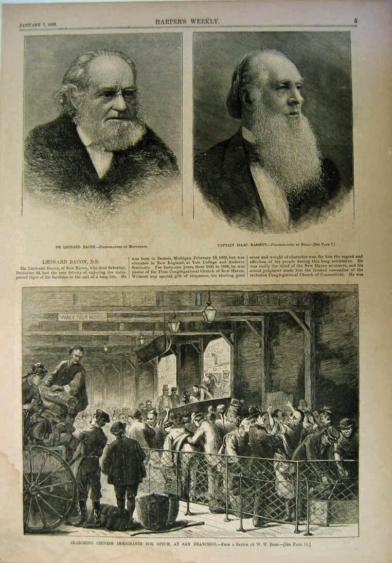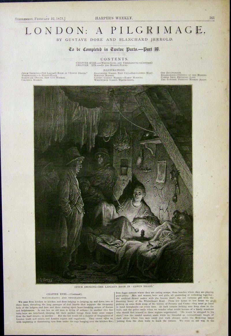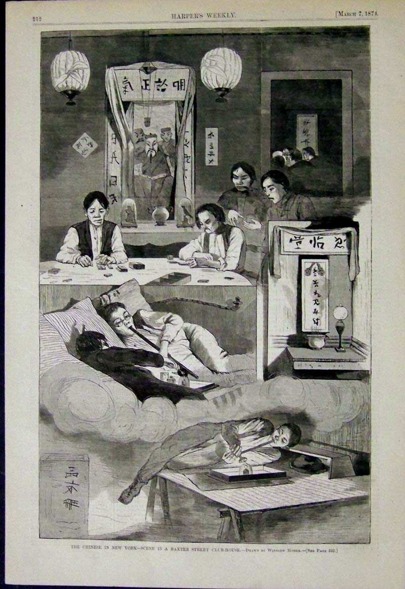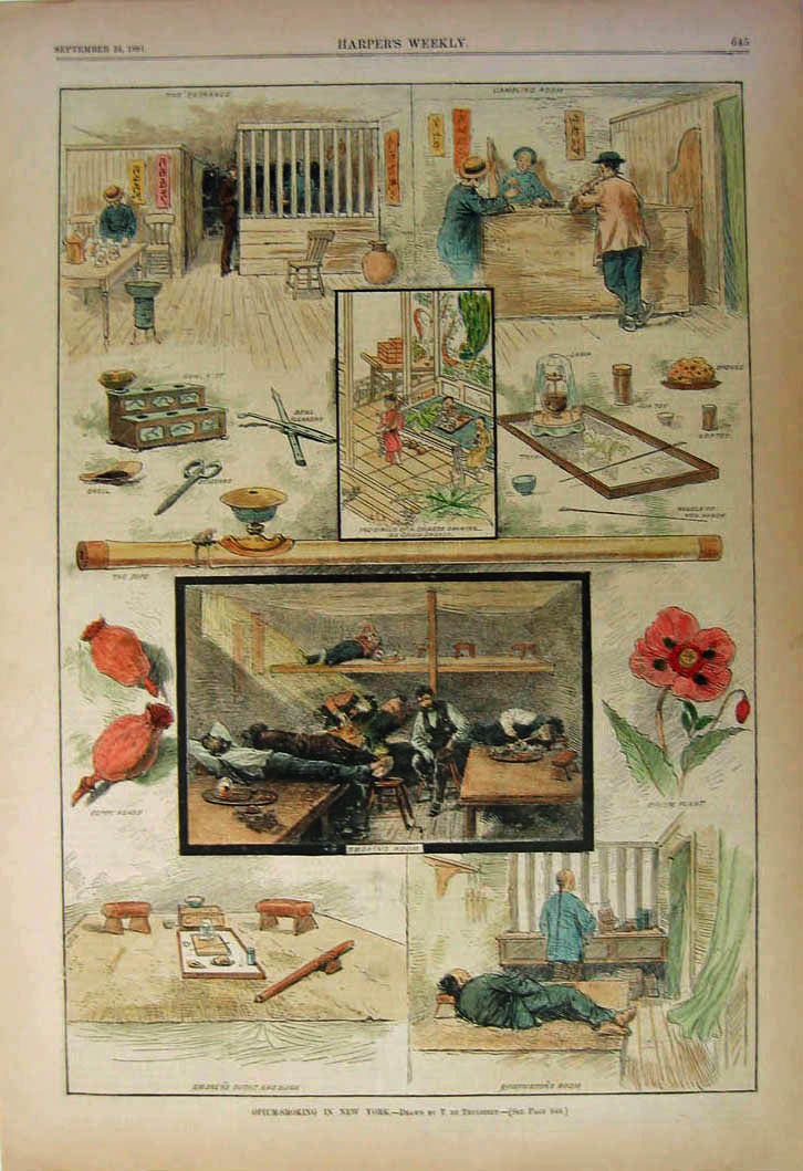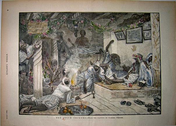 107drug: 1881 Picture of American Opium Smokers smoking opium in an opium den. Gorgeous old hand colored engraved image titled, "American Opium Smokers-Interior of a New York Opium Den," drawn by J. W. Alexander from Harper's Weekly. Shows scene of American Opium Smokers smoking opium in an opium den. 11 x 16in. $50 109drug: 1881 Images of people smoking opium in the dens of New York. Elegantly hand colored antique engraved images titled, "Opium Smoking in New York," drawn by Thulstrup from Harper's Weekly. Shows scene of people smoking opium in the dens of New York. 11 x 16in. $40 110drug: 1882 Picture of Chinese Immigrants being searched for opium upon entrance into San Francisco. Intricately engraved image titled, "Searching Chinese Immigrants for Opium, at San Francisco," drawn by Bode from Harper's Weekly. 11 x 16in. $30 111drug: 1873 Image of Opium Smoking in the Lascar's Room. Elegantly engraved image titled, "Opium Smoking-The Lascar's Room in Edwin Drood," from the London: A Pilgrimmage. Show scene of Opium Smoking in the Lascar's Room. 11 x 16in. $30 112drug: 1896 The Opium Smokers - From The Painting By Gabriel Ferrier. Hand colored wood engraving published in Collier's Weekly on January 2, 1896. Picture depicts opium smokers hallucinating. 11x15in. $80 |