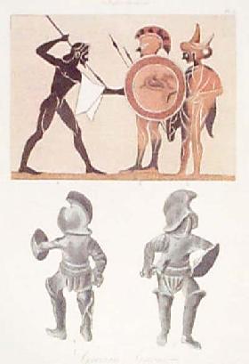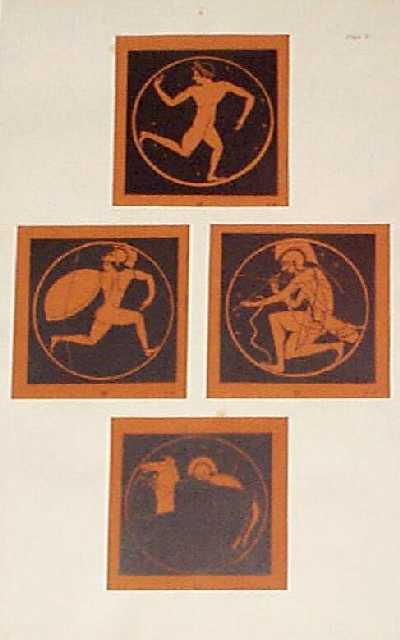 ![]() 005gr: 1746 Views of Greek Priest Robes. Antique hand colored copper engraving, showing three Greek priests wearing ceremonial robes. Left and center images are titled "Officiating Habit of a Greek Papa or Priest." Image on the right is titled "Officiating Habit of a Greek Patriarch." Printed on hand laid paper. A tear in the top margin has been repaired on the back, but the image is not affected. 8x14 in. $60 ![]() 006gr: 1885 Lithograph of Ancient Greek Images. Four lithographed views of Greek warriors, taken from fragments of ancient pottery. 11x17 in. $100 ![]() 009gr: 1885 Lithograph of Ancient Greek Images. Four lithographed views of Greek gods and warriors, taken from fragments of ancient pottery. 11x17 in. $100 ![]() 010gr: 1827 Map of Ancient Greece. Hand colored, old engraved map of ancient Greek lands, published in 1827 by D. MacPherson. All titles are written in Latin. The main map titled is "Populi, Urbes etc. in Graecia, Thracia et Asia, quorum meminit Homerus." There are two small inset maps on the right side: 1) "Ilium et Theatrum Iliados;" and 2) Gentes Orientales Priamo Auxiliantes." 10x16 in. $80 ![]() 013gr: 1840 Map of Ancient Athens Greece. Interesting map, titled "Plan of the Antiquities of Athens." Published circa 1840 as an illustration to a book. Locations of ancient buildings and other landmarks are shown, with notations about each of the sites. 10x13 in. $40 ![]() 015gr: 1835 Map: Peloponnesus and Attica Greece. Engraved map, with original hand coloring, published by T. Tegg circa 1835. Title of the map is "Peloponnesus et Attica." Provinces within the area are each colored separately. Locations of cities and geographical features are shown. 9x11 in. $50 ![]() 016gr: 1880 Views of Armor, Ancient Greece. Color lithographed views of ancient Greek armor, published circa 1880 in a design book. Top view shows a traditional drawing of Greek warriors with spears. Beneath are front and back views of an entire suit of armour. 10x12 in. $50 |
