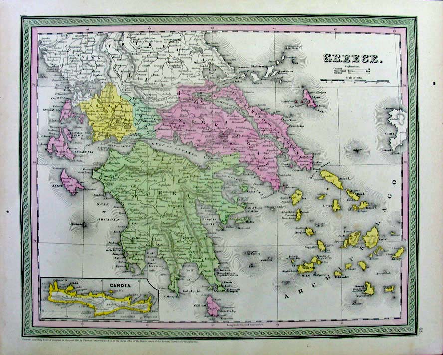 This is a small selection of our inventory of antique Greece maps and prints. Additional inventory is available. Contact us with your request. 1-800-879-6277