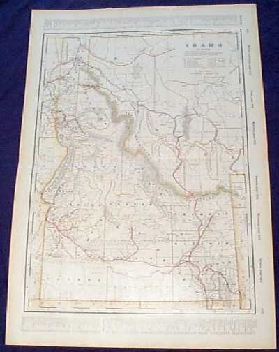 119id: 1892 Rare Rand McNally Railroad Map of Idaho which shows all the railroad stops. All of the counties are outlined. 20-1/2 x 13-1/2 in. $120