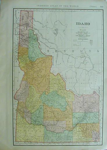 229idaho: Atlas of the World color map of Idaho. 12-1/2 x 10 in. $30