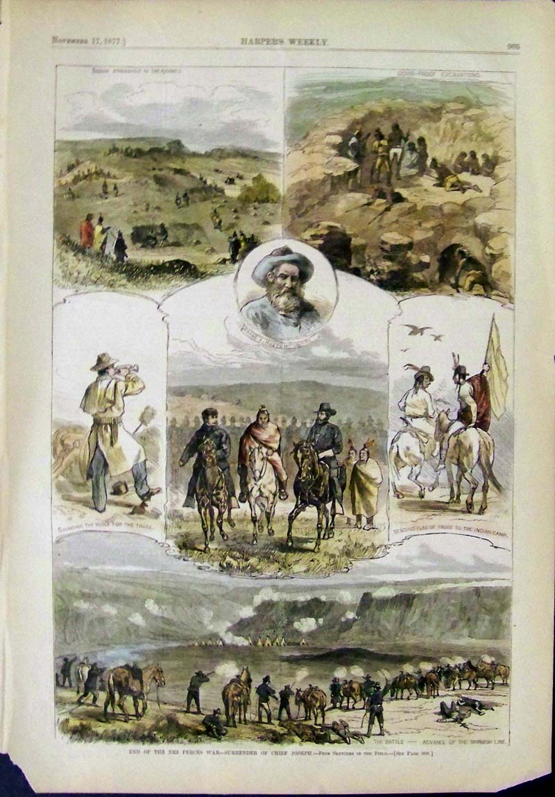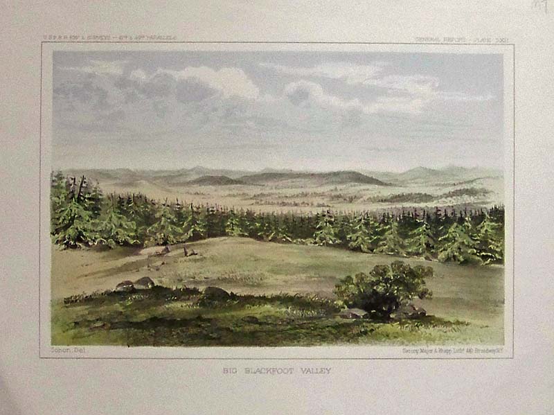 209id: 1855 Colton's hand colored map of Oregon, Washington and Idaho. Counties and townships are marked in each state with counties colored in different pastel colors. Railroads, mountains and rivers are all marked. The western part of Montana is also shown as well as parts of California, Nevada, Utah and Wyoming. 17.5x28 in. $250 ![]() 210id: 1877 Hand colored wood engraving featured in Harper's Weekly showing several engravings titled, "End of the Nez Perces War -- Surrender of Chief Joseph." 16 x 11 in. $90 ![]() 212idaho: 1853 Hand colored lithograph of the U.S.P.R.R. Exp. & Surveys General Report - Plate XXVIII showing the Teton Valley. Lithograpgh by Sarony, Major & Knapp., NY. 11-1/2 x 8-1/2 in. $60 ![]() 213idaho: 1853 Hand colored lithograph of the U.S.P.R.R. Exp. & Surveys General report Plate LXII showing the Big Blackfoot Valley. Lithograph by Sarony, Major & Knapp, NY. 11 x 8-1/2 in. $50