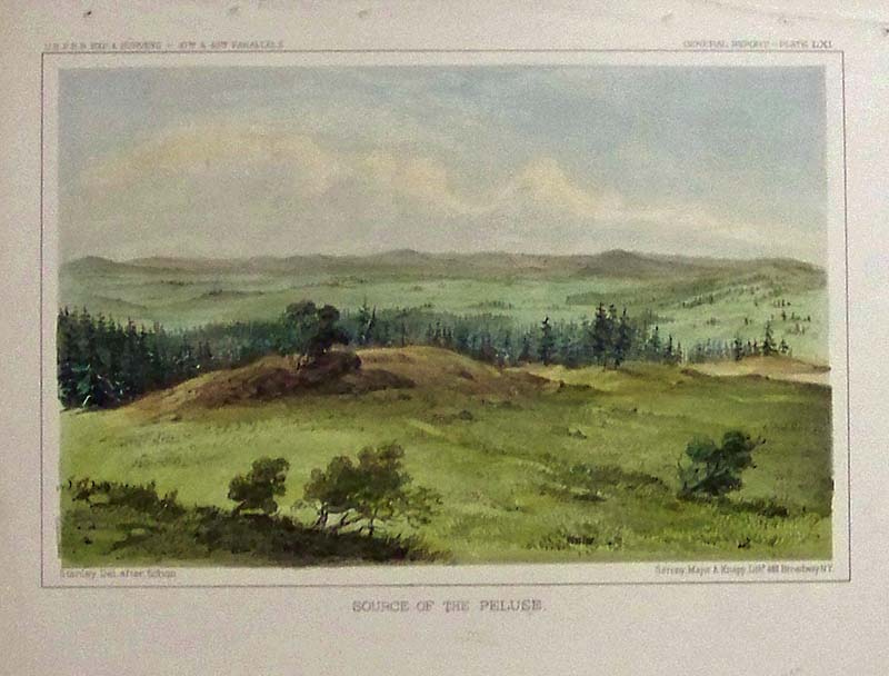 214idaho: 1853 Hand colored lithograph of the U.S.P.R.R. Exp. & Surveys General report Plate LXI showing the Source of the Peluse. Lithograph by Sarony, Major & Knapp, NY. 11 x 8-1/2 in. $50 |