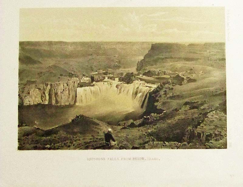 219idaho: 1853 Hand colored lithograph of the U.S.P.R.R. Exp. & Surveys General report Plate XVII showing the Shoshone Falls, From Below - Idaho. 10 x 8 in. $60