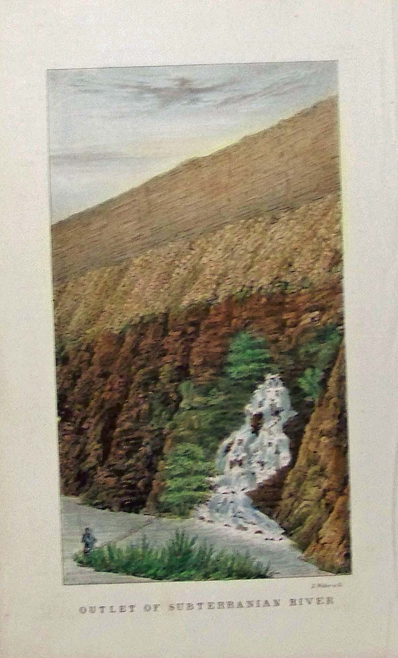 225idaho: 1845 Hand colored lithograph by E. Weber & Co. showing the Outlet of Subterranian River. Part of the Fremont Expedition. 9 x 5-1/2 in. $60