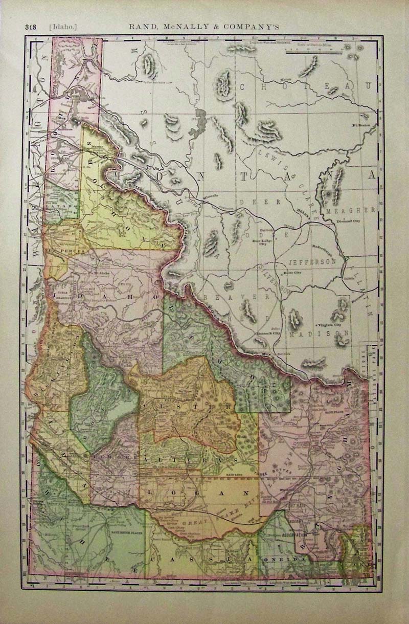 228idaho: Color map of Idaho published by Rand, McNally & Company. 22 x 14-1/2 in. $80