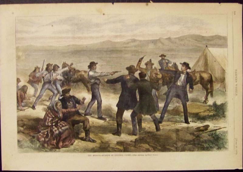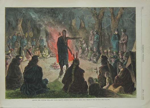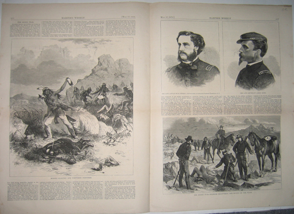 ![]() 127indn: 1887 In The Lodges of the Blackfeet Indians. Remington Native American Indian print. size: 11x16 in. $50 ![]() 206indn: 1887: Indians, Cowboys in Winter. Hand colored engraving by H.F. Farny, from Harper's Weekly. Title is "Suspicious Guests." Shows a group of cowboys gathered around a campfire, watching warily as an Indian approaches them. 16x22 in. $150 b/w: $80 ![]() 209indn: Beautiful hand colored engraving from Frank Leslie's Illustrated Newspaper dated March 15, 1884. Page caption reads, Educating the Indians, - Scenes at the Government Training School at Carlisle, PA. Ten images showing different scenes from the school. size: 11x16 in. $150 ![]() 210indn: January 18, 1879 issue of Frank Leslie's Illustrated Newspaper. Four hand colored engravings on one page titled, Virginia - Civilizing the Red Men - The Government School for the Education of Indian Youth at Hampton. 11x16 in. $50 ![]() 213indn: Red River Expedition in North America. Two hand colored engravings from the June 4, 1870 issue of The Illustrated London News. Upper image of The Prairie Crees. Lower image titled, Ojibways of Red River. Small tear on lower right side has been archivally repaired. 16x11 in. $60 ![]() 215indn: The Car Among the Wigwams: A Novelty in an Indian Camp in Canada. Hand colored half tone from the February 29, 1908 issue of The Illustrated London News. 11x15.5 in. $50 ![]() 224indn: 1873 "The Rev. Dr. Thomas" and "The Modocs - Murder Of General Canby And The Rev. Dr. Thomas." Two wood engravings with text published in Harper's Weekly on May 3, 1873. 11x16in. $30 ![]() 227indn: 1873 The Modoc War Region - Five wood engravings depicting scenes in the Modoc war region, with text, published in Harper's Weekly on June 14, 1873. 11x16in. $30 ![]() 228indn: 1873 Funeral Of The Late General Canby - The Body Lying In State - Photographed By Buchtel & Stolte, Portland, Oregon; AND Funeral Of The Late General Canby - Armory Hall Where The Body Lay In State - Photographed By Buchtel & Stolte, Portland, Oregon. Two wood engravings plus text published in Harper's Weekly on May 24, 1873. Small tear in top left-hand corner. 11x16in. $40 ![]() 230indn: 1873 Modocs Scalping And Torturing Prisoners AND The Late Captain Evan Thomas AND The Late Lieutenant Albion Howe AND The Modoc War - Soldiers Recovering The Bodies Of The Slain. Wood engravings with text published in Harper's Weekly on May 17, 1873. 16x22in. $30 ![]() 231indn: 1873 The Modocs - Murder Of General Canby. Hand colored wood engraving published in Harper's Weekly on June 28, 1873 depicts a man pointing a pistol at General Canby as the general's hand is outstretched as he tries to stop this occurence, as many other people watch on. 10.5x15in. $80 ![]() 223Minnesota: 1835 Very Rare - “A Reconnoisance of the Minnay Sotor Watapah, or St. Peter’s Rivers, to its sources. With points of interest, topography, and both Indian and French terms.” Very rare engraving. 22 1/2 x 41 in. $950 ![]() 077frem: 1889 Wood engraving titled, "Cheyenne Scouts Patrolling the Big Timber of the North Canadian, Oklahoma." This is one of Frederic Remington's best engravings. 23 x 16-1/2 in. $300 ![]() 1004indn: c1900 Print: Indians Stalk Antelope. Original Harper's Weekly. (c1900) Stalking Antelope. Color: Black and White. Type: Half Tone. Size: 11x16 in. $40 |