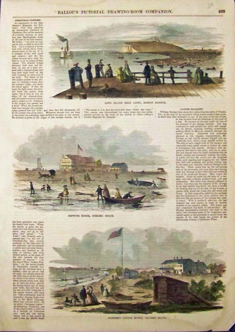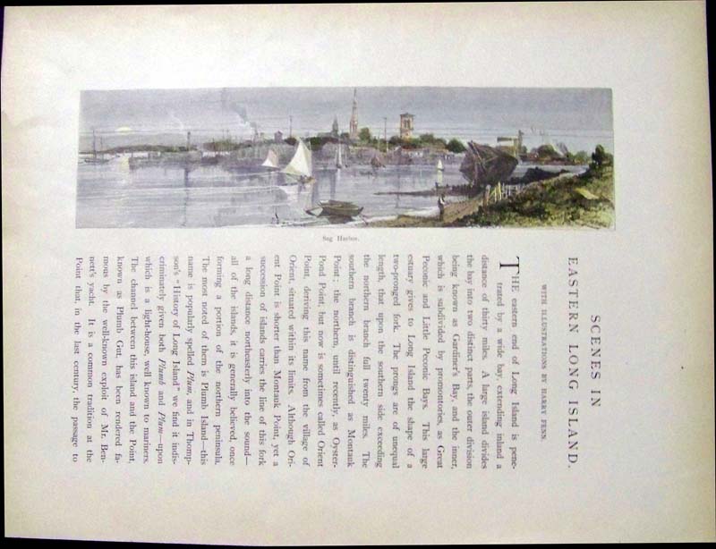 ![]() 002lni: 1905 Teddy Roosevelt in Oyster Bay. Political cartoon from Leslie's Weekly showing Roosevelt in Oyster Bay Long Island, engaged in diplomacy to avoid war with other nations. 11x16 in. $30 SOLD ![]() 003lni: 1874 Long Island Forest Fire views. Three hand colored engraved scenes on one page, showing the destructive effects of forest fires. 11x16 in. $50 ![]() 004lni: 1880 Battle of Long Island. "Retreat of the Americans under General Stirling across Gowanus Creek." Hand colored steel engraving entered according to act of Congress AD 1877 by Johnson and Miles in the office of the Librarian of Congress at Washington. size: 7x9.5 in. $50 ![]() 006LongIsland: This hand colored wood engraving was featured in Ballou's Pictorial Drawing-Room Companion and shows in top image the Long Island Head Light in Boston Harbor. Scenes from Chelsea Beach are featured below that. 15 x 10-1/2 in. $50 ![]() 007lni: 1888 Truck Farming on Long Island. Hand colored antique engraving from Harper's shows how New York City kept a fresh vegetable supply. 11x16 in. $50 ![]() 009lni: 1883 Winter Sketches on Long Island Shore. Collection of hand colored antique engraved Long Island winter scenes on one page. Harper's. 11x16 in. $50 ![]() 010lni: 1901 Chinese farm on Long Island. Hand colored antique half-tone print. 11x16 in. $60 ![]() 011lni: 1886 Duck Hunting on Long Island. Scenes from the opening of duck hunting season on Long Island Sound. Hand colored antique engraving from original Frank Leslie's Illustrated Newspaper. 11x16 in. $50 ![]() 101lni: 1873: Windmills at East Hampton Long Island. Hand colored engraving from Picturesque America, titled "Grist Wind-Mills at East Hampton." Nice view of the windmills, with ducks and a horse-drawn cart in the foreground. 9x12 in. $40 ![]() 102lni: 1873: Eastern Long Island Scenes. Hand colored engraving from Picturesque America, titled, "Eastern Long Island Scenes." Six views of the Eastern Long Island countryside are shown, mostly along the water. 9x12 in. $40 ![]() 105lni: 1887 Menhaden Fishing, South Long Island. Hand colored engraving from an 1887 book on US commercial fisheries. Title of the scene is "The Menhaden Fishery. Fleet of Menhaden Steamers En Route to Fishing Grounds on South Side of Long Island." 9x11 in. $50 ![]() 106lni: 1902: Polo on Long Island, New York. Three hand-tinted, photographic images from Harper's Weekly, titled "Polo at the Meadowbrook Club, Long Island." Nice views of the action in a polo game, taken from the side of the field. 11x16 in. $60 ![]() 107lni: 1887: Scenes in Flushing, Long Island. Five engraved scenes from Frank Leslie's Illustrated Newspaper, titled "Long Island: Historic Buildings and Picturesque Relics of the Old Town of Flushing." Contains views of the exteriors and interiors of historic houses in the town. 11x16 in. $60 |