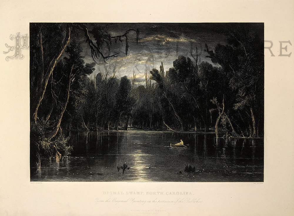 020nc: 1862 The Civil War in America: Camp Winfield, Hatteras Inlet, North Carolina. Wood engraving featured in The Illustrated London News. 16 x 11 in. $60 ![]() 022nc: 1891 The Week of Sport in Central North Carolina. Harper's Weekly hand colored wood engraved scenes. 16 x 11 in. $60 ![]() 019amla: 1869 Rare hand colored steel engraving from American Landscape published from the Original Painting in the Possession of the Publishers of William Pate & Company, New York. Engraving title is, "Dismal Swamp, North Carolina." Engraving shows a lone canoer rowing by moonlight. 16 x 11-1/2 in. $250 |