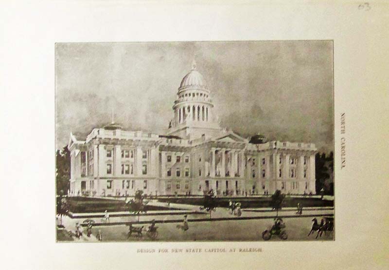 023nc: 1903 Design for New State Capitol at Raleigh - Half-tone image of the State Capitol in Raleigh, North Carolina. 10 x 7 in. $25