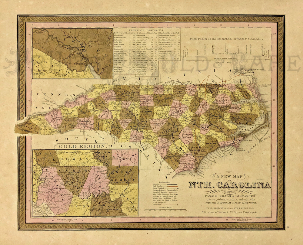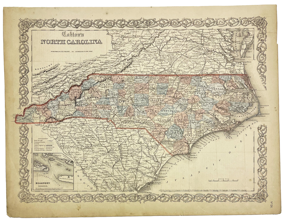 This is a small selection of our inventory of antique North Carolina maps and prints. Additional inventory is available. Contact us with your request. 1-800-879-6277