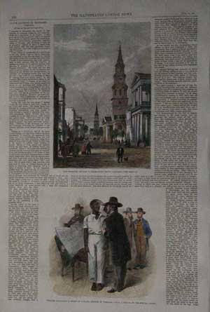 ![]() 112rm: 1862 Richmond VA Civil War Prisons. Hand colored engraving from Harper's Weekly, titled "The Prisons and Jailers at Richmond." Portraits of two Southern jailers are shown, as well as a portrait of a prisoner of war. Views of three prisons are shown as well: 1) "The Rebel Prison on Main Street Near 25th Street;" 2) "Prison No. 2, Richmond;" and 3) "Sudley Church." 11x16 in. $60 ![]() 114rm: 1873: Richmond VA Seen From James River. Hand colored engraving from Picturesque America, titled "Richmond from the James." Shows a view of the city as seen from the opposite side of the river, with a bridge in the foreground. 9x12 in. $50 ![]() 116rm: 1835: Richmond Virginia Episcopal Church. Hand colored steel engraving by W. Goodacre, titled "Episcopal Church at Richmond, Virginia." Shows an exterior view of the church, with several figures in the foreground. 9x11 in. $50 ![]() 117rm: Very nice hand colored engravings from the December 21, 1889 issue of Frank Leslie's Illustrated Newspaper. Large engraving on bottom is titled, The Death of Jefferson Davis. - The Daughter of a Confederate Veteran Decorating the Portrait of the Deceased Chief. Upper left picture captioned, The Residence of Jefferson Davis in Richmond, VA., as it Appeared During the War. Top right picture of his daughter, Miss Winnie Davis. 11x16 in. $50 ![]() 119rm: Two hand colored wood engravings from the February 16, 1861 issue of The Illustrated London News. Top image is captioned, The Principal Church in Charleston, South Carolina. Lower image is captioned, Dealers Inspecting a Negro at a Slave Auction in Virginia. Article surrounding pictures is titled, Slave Auctions in Richmond, Virginia. 16x11 in. $80 ![]() 122rm: 1862 Harper's Weekly hand colored wood engraving showing The City of Richmond, Virginia. Drawn by A Refugee Just Escaped from Secessia. 15-1/2 x 10-1/2 in. $60 ![]() 123rm: 1861 Hand colored wood engraving featured in The Illustrated London News titled, "The Civil Way in America: Sketches from Richmond, Virginia, The Capital of the Confederate States of America." 16 x 10-1/2 in. $50 ![]() 124rm: 1886 Hand colored wood engraving from Frank Leslie's Illustrated Newspaper titled, "Virginia -- The Confederate Veterans' Home at Richmond -- Distributing Rations of Tobacco." Image shows a long line of veterans eager for a smoke. 16 x 10-1/2 in. $60 ![]() 125rm: 1887 Hand colored wood engraving from Harper's Weekly titled, "Picturesque Richmond." Drawn by Charles Graham. Image collage shows the Old Bell Tower, the Medical College, the remains of Fortification at the Tredegar Works, among other views. 22 x 16 in. $80 ![]() 126rm: 1887 Charles Graham hand colored wood engraving featured in The New South titled, "Richmond -- The Tredegar Iron-Works." 22 x 16 in. $80 ![]() 127rm: 1885 Hand colored wood engraving featured in Harper's Weekly titled, "Tobacco Culture in Virginia." Drawn by W.L. Sheppard from Sketches by John S. Gibbs. 16 x 11 in. $60 |