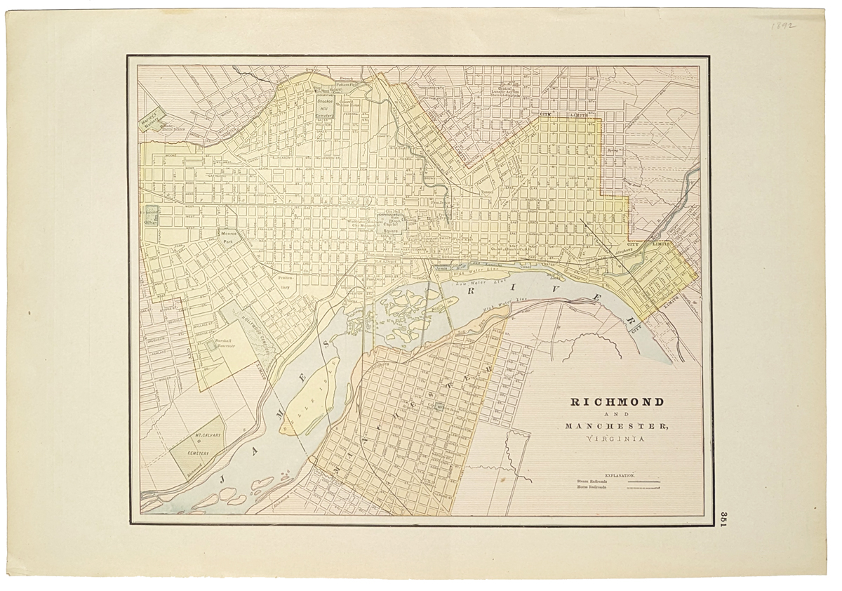 This is a small selection of our inventory of antique Richmond, VA maps and prints. Additional inventory is available. Contact us with your request. 1-800-879-6277