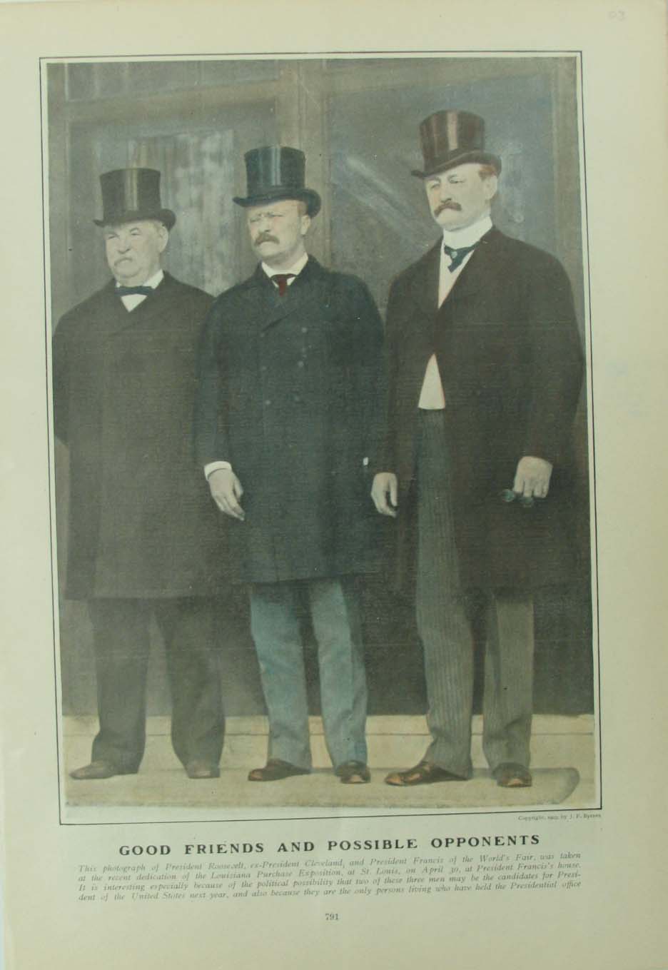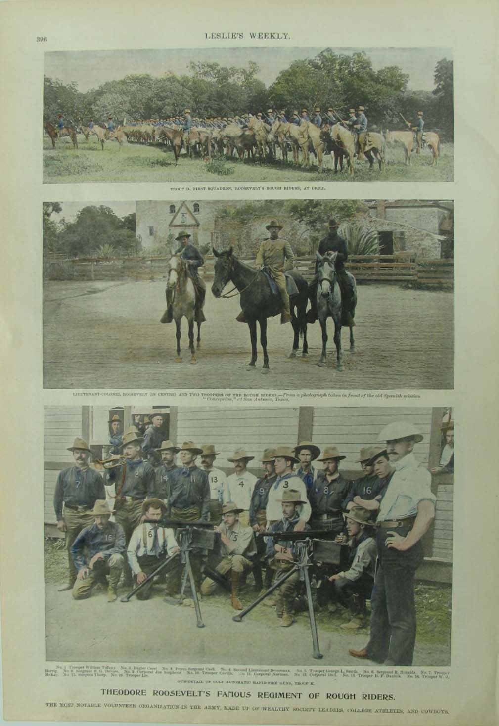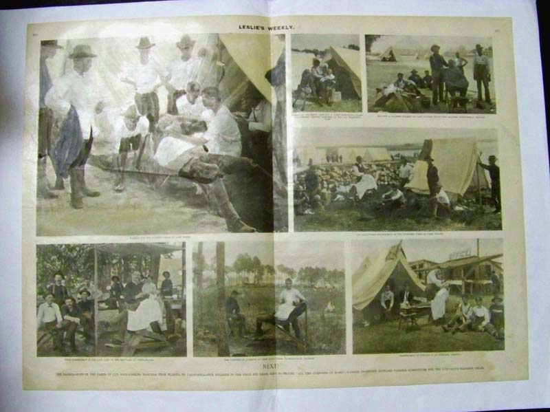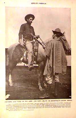 ![]() 001ted: C.1900 Leslie's Weekly half-tone titled, "Colonel Theodore Roosevelt," who was the courageous leader of the famous Rought Riders, the Republican Candidate for Governor of New York State, and a Presidential Possibility in 1900. Hand colored, half-tone. **Center fold has been reinforced/mended. 22 x 16 in. $120 b/w: $80 ![]() 020ted: UNIFORMS OF ROOSEVELT'S 'ROUGH RIDERS.' This old half-tone image shows the uniforms worn by the Rough Riders, Theodore Roosevelt's regiment that fought in Cuba during the Spanish-American War. Caption describes in detail the Khaki uniform of the rider, and the poncho of the other soldier. Original page, Leslie's Weekly, January 5, 1999 - antique print over 100 years old. 11" x 16" Black & White is: $30 Color is: $40 ![]() 025ted: C.1912 Political caricature of the G.O.P. Party. Gorgeous engraving titled,"Lining Up For the Greatest Race in the World," drawn by W.A.Rogers from Harper's Weekly. 22 x 16 in $80 ![]() 026ted: 1913 Political caricature of Teddy Roosevelt. Beautiful engraved image titled,"His Master's Voice," drawn by C.J. Budd from Harper's Weekly. 11 x 16in. $30 ![]() 030ted: Harper's Weekly "Constructions of the constitution will be found to vest the power where it will be exercised - in the national government" Roosevelt putting Supreme Court robe on Moody while Secretary of War Taft reads simplified constitution.1906 12 x 8 1/2 in. $40 ![]() 034ted: Harper's Weekly "The 'Little Senate' " by Thulstrup pictured in President's Office: Littlefield, Burrow, Nelson, Foraker , Grosvenor, Quay. hand colored 1903 11 1/2 x 7 1/2 in $40 11 1/2 x 7 1/2 in. $40 ![]() 035ted: Harper's Weekly. "Good Friends and Possible Opponents" Theodore Roosevelt at the dedication of the Louisiana Purchase Expo in St. Louis. 1903 hand colored. 11 1/2 x 8 in $40 ![]() 036ted: Leslie's Weekly "Theodore Roosevelt's Famous Regiment of Rough Riders" bottom of picture has key listing members of Troop K. which are, by number: No. 1 is Trooper William Tiffany, No. 2 is Bugler Cassi, No. 3 is Provo Sergeant Cash, No. 4 is Second Lieutenant Devereaux, No. 5 is Trooper George L. Smith, No. 6 is Sergeant R. Ronalds, No. 7 is Trooper Herrig, No. 8 is Sergeant S.G. Devore, No. 9 is Corporal Joe Stephens, No. 10 is Trooper Coville, No. 11 is Corporal Norman, No. 12 is Corporal Bull, No. 13 is Trooper B.F. Daniels, No. 14 is Trooper W.J. McKay, No. 15 is Surgeon Thorp and No. 16 is Trooper Lie. Hand colored 1898. 11 x 16 in. $95 ![]() 039ted: Harper's Weekly "The President in the West" Roosevelt in Arizona, California and New Mexico in 1903 8 x 11 1/2 in. $40 ![]() 047ted: 1898 Hand colored half-tone from Leslie's Weekly Illustrated showing "Uniforms and Types of the Army and Navy -- Plate X. Rough Riders." Paragraph under caption describes how the uniforms are made and which materials are used. 16 x 11 in. $50 Black & White Half-tone: $40 ![]() 048ted: 1898 Half-tones on double-page from Leslie's Weekly showing Buffalo soldiers getting shaved in the field barber-shops and camps. Caption reads, "The Barber-Shops in the Camps of Our Good-Looking Fighters, From Florida to California -- Our Soldiers in the Field Did Their Best to Secure "All the Comforts of Home" -- Yankee Ingenuity Supplied Various Substitutes for the Luxurious Barber's Chair." 21 x 16 in. $90 ![]() 050ted: 1908 Color double-page Lithograph from Judge titled, "Which?" Lithograph shows two large drums with the words 'The Third Term" written on them with Roosevelt wearing a banner saying 'Square Deal' sitting on the left and a clown wearing a banner which reads 'Free Trade' seated at the right. 21 x 14 in. $120 ![]() 051ted: 1901 Leslie's Weekly half-tone captioned, "President Roosevelt Enjoys A Notable Foot-Ball Game." Several half-tones show the President, Mrs. Roosevelt and their friends enjoying the spirited contest at Philadelphia between the Naval Academy and West Point teams. 16 x 11 in. $50 ![]() 055ted: 1906 Chromolithograph from Judge showing the G.O.P. patriotic elephant wearing a boxing glove on his trunk as the referee, Roosevelt, pats him down with the Square Deal. Caption reads, "Well Done!" Roosevelt tells the elephant, "You have done fine! We are finishing the year in great shape!" Ex-Library. 14 x 10 in. $50 |