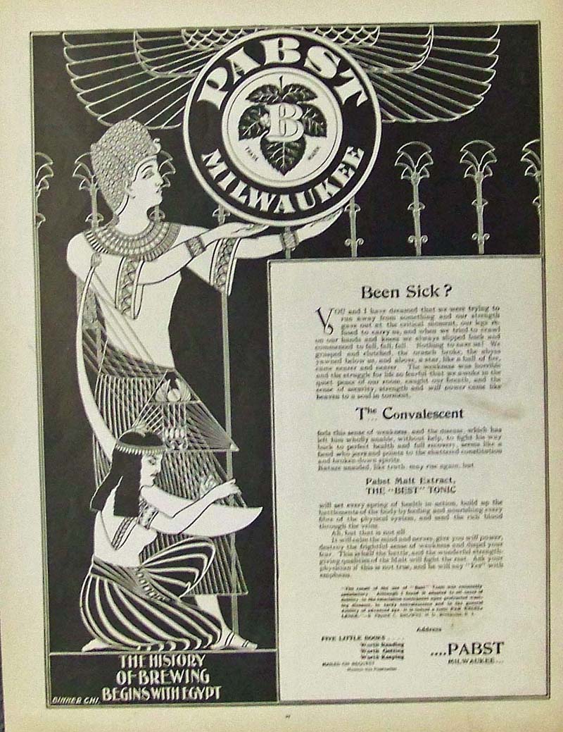 025alco: 1895 Pabst Milwaukee advertisement showing Egyptians holding up the beer seal. "The History of Brewing Begins with Egypt." 13 x 9-1/2 in. $30