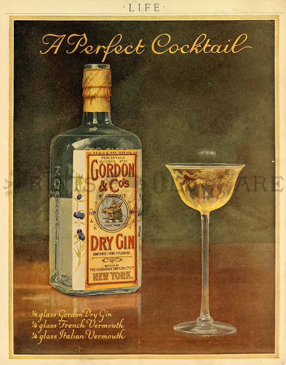 217alco: 1934 Black and white advertisement 'Oasis' Dixie Belle Triple Distilled Gin Philadelphia. 8 1/2 x 11 5/8 in. $30 ![]() 218alco: Gordon & Co. Dry Gin color advertisement. Listing the ingredients for 'A Perfect Cocktail.' 8 1/2 x 10 3/4 in. $40 ![]() 219alco: 1916 Barton and Guestier-Bordeaux, B&G St. Julien Claret color ad. 8 3/4 x 11 in. $40 ![]() 221alco: 1913 Clysmic Spring Co. Wisconsin Spring Water color halftone print. 'The only water that blends perfectly with distilled liquors.' 10 1/2 x 15 3/4 in. $40 ![]() 222alco: 1950 Rums of Puerto Rico. Colorful ad showing 3 characters with different cocktails with recipie for each cocktail listed. 'Double your fun with Puerto Rican rum!' 10 1/2 x 14 3/4 in. $40 ![]() 223alco: U.S. Stamp for special tax. $100 per year coupon for wholesale liquor dealers, dated April 1879-1880. 7 x 14 3/4 in. $30 ![]() 224alco: 'Moonshiners' drawn by C.S. Reinhart. 1878 Harpers Weekly. Wood engraving. 16 x 11 in. $40 ![]() 225alco: U.S. Cavalry Hunting for Illicit Stills in the South. Sketched by A.W. Thompson. 1867 Harper's Weekly. Hand colored, wood engraving. 7 1/2 x 10 1/2 in. $40 ![]() 226alco: Illicit Distillation of Liquors - Southern Mode of Making Whisky. 1867 Harper's Weekly. Hand colored, wood engraving. 8 1/2 x 10 1/2 in. $40 ![]() 228alco: Whisky Drink 1874. A delirium tremens patient in a horror cell on Blackwells Island. Wood engraving. 11 x 16 in. $80 ![]() 229alco: Against Alcohol 1871. Practical argument showing 4 vingnettes of police interaction with drinks as well as fights. 11 x 16 in. $50 Also see Wine Making & Wine Grapes |