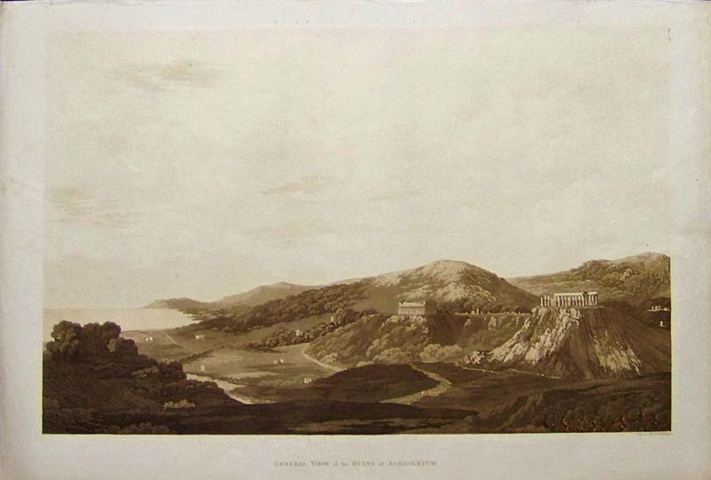 004arch: Rare 1745 Architectural Views in Thessalonica. Hand colored antique copper engraving from a 1745 architectural text. Shows arches, and an old plan of a church in Thessalonica. Printed on hand laid paper. The original printing plate mark is visible around the image. 9x16 in. $120 007arch: 1798 Architectural Views: Decorative Frames. Four copper-engraved images on one page from a 1798 architecture text, showing close-up views of decorative door and window frames. Printed on hand laid paper. The stamp of a library which previously owned the print is barely visible in the center of the image. It is not visually distracting. 8x10 in. $40 017arch: Rare Sepia tone aquatint 'View of the Ruins of the Temple of Jupiter Olimpius' Published June 4th 1806, by Mefs. Longman, Hurst, Rees & Orme, Paternoster Row, London. Beautifully detailed Architecture print. 22x14 1/2 with ample margins for framing. $200 018arch: Rare Sepia tone aquatint 'The Third Temple at Selinus' Published June 4th 1806, by Mefs. Longman, Hurst, Rees & Orme, Paternoster Row, London. Beautifully detailed Architecture print. 22x14 1/2 with ample margins for framing. $200 ![]() 019arch: C.1807 Sepia-toned engraved General View of the Ruins of Agrigentum. Published by Longman, Hurst, Rees, & Orme, London. 22 x 15 in. $250