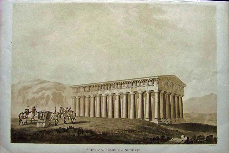 025arch: C.1810 Sepia-toned engraved View of the Temple at Segesta. 22 x 15 in. $300