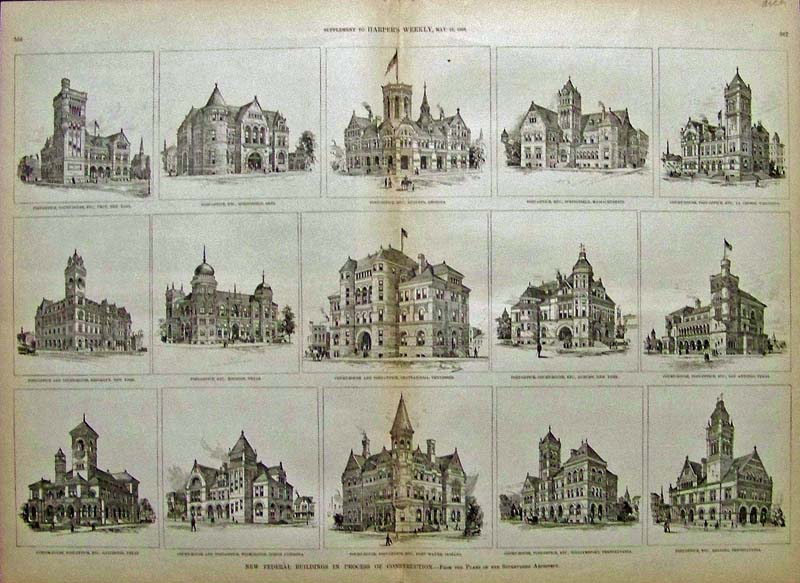 047arch: 1779 Hand colored copper engraving showing The South Prospect of the Church of St. Sepulchre. 16 x 10 in. $120 ![]() 048arch: 1888 Harper's Weekly wood engraving showing the New Federal Buildings In Process Of Construction. -- From the Plans of the Supervising Architect. Among the buildings depicted are the Court House and Post Offices of various cities. 22 x 16 in. $80 ![]() 050arch: Architecture copper engraving showing the architectural structure of Westminster Hall. 10-1/2 x 8 in. $60 |