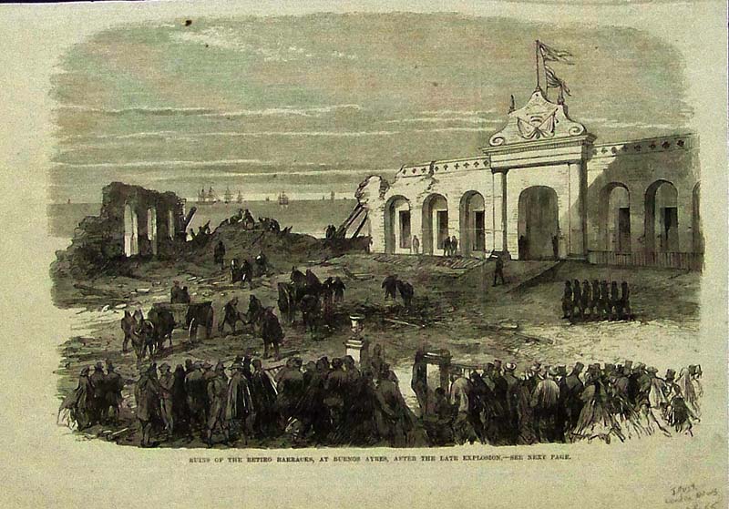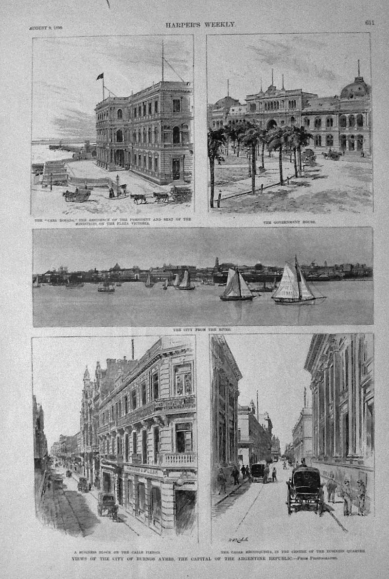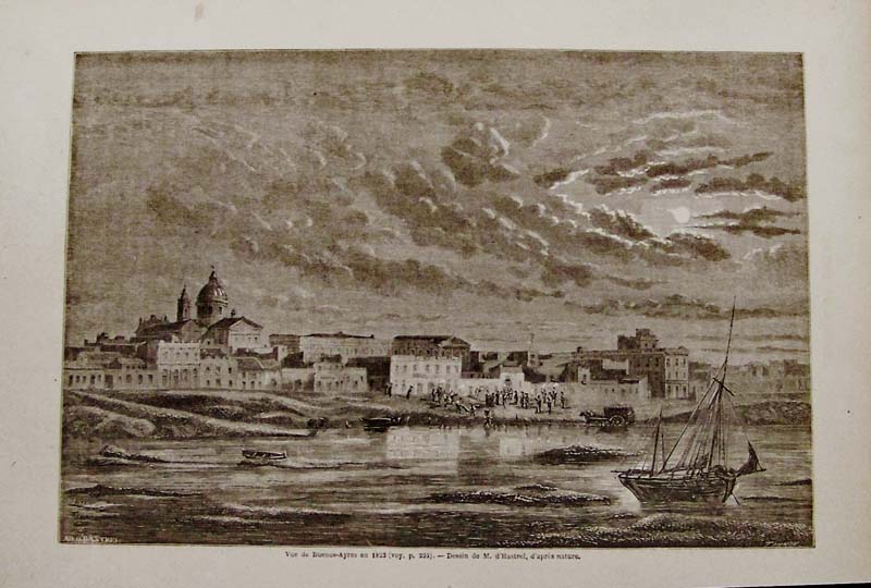 ![]() 001arg: 1889 Street Scenes in Buenos Ayres. Wood engravings show images of the Presidential Palace in top engraving and Avenue Sarmiento, Third-of-February Park in Buenos Ayres in bottom image. Published as an illustration to a book in 1889. 11 x 8 in. $30 ![]() 004arg: 1882 Portraits of Republican government and Views of Exhibition Building. Hand colored wood engraving shows three portraits of Buenos Ayres Minister of Finance; Governor and Minister of Finance; and members of the Argentine Republican Government responsible for opening the Suth American Exhibition at Buenos Ayres. Published in The Illustrated London News. 16 x 11 in. $40 ![]() 006arg: 1865 Barrack Ruins in Buenos Ayres. Wood engraving shows the scene after an explosion at the Retiro Barracks in Buenos Ayres. Published in The Illustrated London News. 11 x 8 in. $20 ![]() 011arg: 1920 Street Scene of Avenida Rio Branco. Print shows a photograph of the famous Avenida Rio Branco published in 1920. 6 1/2 x 10 in. $30 ![]() 014arg: 1890 Harper's Weekly Views of the City of Buenos Ayres, the Capital of teh Argentine Republic. Wood engraving. 10.75 x 16.25 in. Black & White: $40 ![]() 015arg: C.1880 Wood engraving showing a view of Buenos-Ayres in 1823. 11-1/2 x 8 in. $30 |