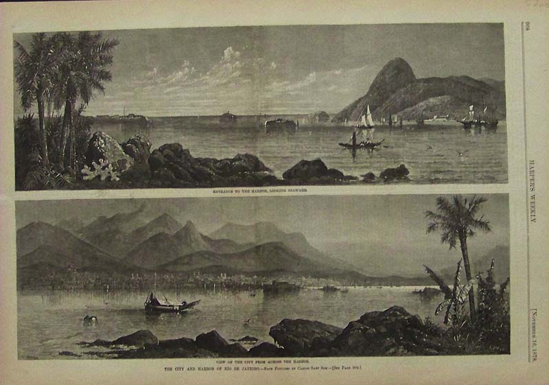 ![]() 033Argentina: Buenos Ayres c.1860. Waterfront. Hand colored, steel engraving. 7 1/4" x 9 7/8" in. $60 ![]() 034arg: Argentine Republic, Chili, Uruguay and Paraguay. 1955 Colton. Detailed map of the region showing various cities, towns, forts, rivers, rapids, mountain passes, fords, and an assortment of additional topographical details. Hand colored, lithograph. 14 x 17 in. $60 ![]() 027arg: 1880 Harper's Weekly wood engraving showing The Carnival in Central America, an image drawn by P. Frenzeny. 15-1/2 x 11 in. $80 ![]() 028arg: 1924 Color Rand McNally, Popular Map of Argentina and Chile. 14 x 11 in. $50 ![]() 029arg: Engraved Map of Part of the Argentine Republic, Showing the Courses of the Rivers on the road to Chile. 18-1/2 x 11-1/2 in. $150 ![]() 030arg: 1878 Wood engraving from Harper's Weekly showing a View of the City and Harbor of Rio De Janeiro from Across the Harbor. 15 x 10-1/2 in. $40 ![]() 031arg: 1888 Harper's Weekly wood engraving showing Views of Town and Country in Honduras, the Pueblo and "Mineral" of Yuscaran, and General Luis Bogran, President of Honduras. 16 x 11 in. $40 ![]() 032arg: 1890 Wood engraving showing Sketches from Buenos Ayres. Published in The Illustrated London News. 16 x 11 in. $40
