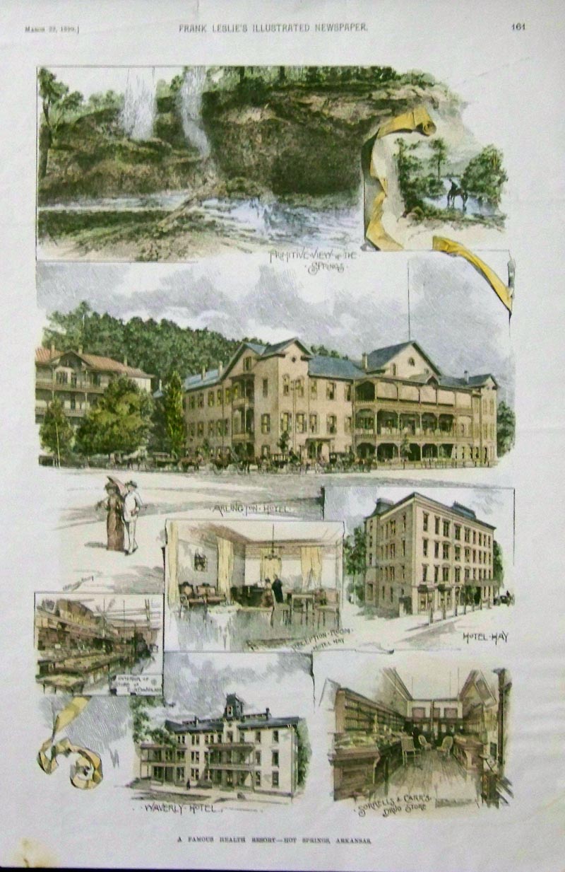 122ar: 1861-1865 Atlas to Accompany the Official Records of the Union and Confederate Armies, 1861-1865, which covers Arkansas and Native American Territories - General Topographical Map Sheet XXIV, Plate CLIX 29x18.5in. $100 126ar: 1886 Hand colored wood engraving featured in Harper's Weekly titled, "Eureka Springs, Arkansas -- Drawn by Charles Graham." Seven views in all showing various places within Eureka Springs, AR. 15-1/2 x 11 in. $60 127ar: 1898 Article featured in Harper's Weekly titled, "Blazing a Trail for Motorists," with color halftones, the middle one captioned, "Unloading from a fresh-water pearl scow, White River, twelve miles below Clanendon, Arkansas." Article is about 'The Vicissitudes of "Path-Finding" the Three Thousand Miles of the Glidden Tour Through Thirteen States.' 16 x 11 in. $40 128ar: 1886 Lithographed Map of Arkansas, copyright secured. On the left side of map it shows the Indian Territory. 25 x 19 in. $80