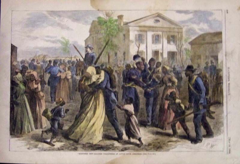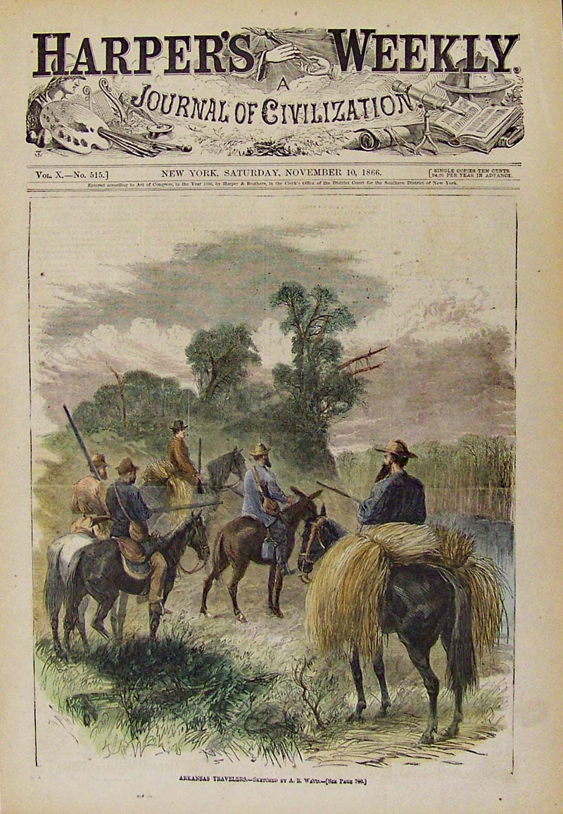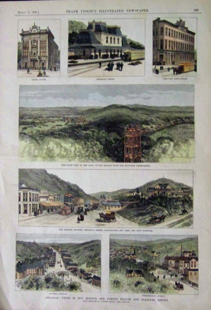 003ar: Antique Civil War views - Fort Hindman, Arkansas, plus three smaller views of Vicksburg on one page. Large 22x16-1/2 in. Handcolored. $60 004ar: ANTIQUE ARKANSAS MAP - 1878. Large map of the State of Arkansas. This is an original hand colored engraving by O.W. Gray & Son of Philadelphia, 1878. Each county is individually hand colored. Old railroads, waterways and towns are shown, as are important Civil War battles. 24"x16". Very good condition. $180 008ar: 1863 Fort Hindman Civil War views. Hand colored Harper's. 16x11 in. $50 014ar: 1887 Hand colored double-page engraving which was featured as a Supplement to Harper's Weekly titled, "Little Rock, Arkansas -- From Photographs." Eleven views of historic buildings and various views are displayed. 22 x 16 in. $150 017ar: 1890 Hand colored antique wood engraving which was featured in Frank Leslie's Illustrated Newspaper showing several views of hotels in Hot Springs, AR. Title on bottom of page is, "A Famous Health Resort -- Hot Springs, Arkansas. 16 x 11 in. $80 ![]() 018Arkansas: "Arkansas Travelers" - View by A.R. Waud showing Squatters being forcibly moved. 1866 Hand colored wood engraving featured in Harper's Weekly. 16 x 11 in. $60