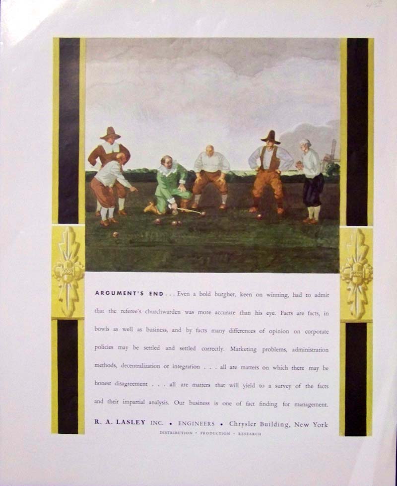 ![]() 103bow: 1893 Bowling Tips. Article from an 1893 issue of Harper's Weekly, illustrated with engraved images of a man bowling. Title of the article is "Form in Bowling." 11x16 in. $30 ![]() 105bow: 1878 Bavarian Bowling Scene. Engraved black and white print from the April 27, 1878 issue of Harper's Weekly. Title is "Bavarian Peasant Sports - Kegelbahn in the Highlands." Kegelbahn is a German version of American ten-pin bowling. 16x22 in. Handcolored: $70 Black & White: $50 ![]() 106bow: 1940 Advertisement for Bowling Equipment. Colorful full-page ad for Brunswick Bowlers Accessories, from the Dec. 1940 issue of Esquire Magazine. 10x14 in. $40 ![]() 107bow: 1953 Advertisement for Gabanero Sports Shirts. Colorful full-page ad from the Saturday Evening Post, featuring a group of young men enjoying themselves at a bowling alley. 10x14 in. $30 |
