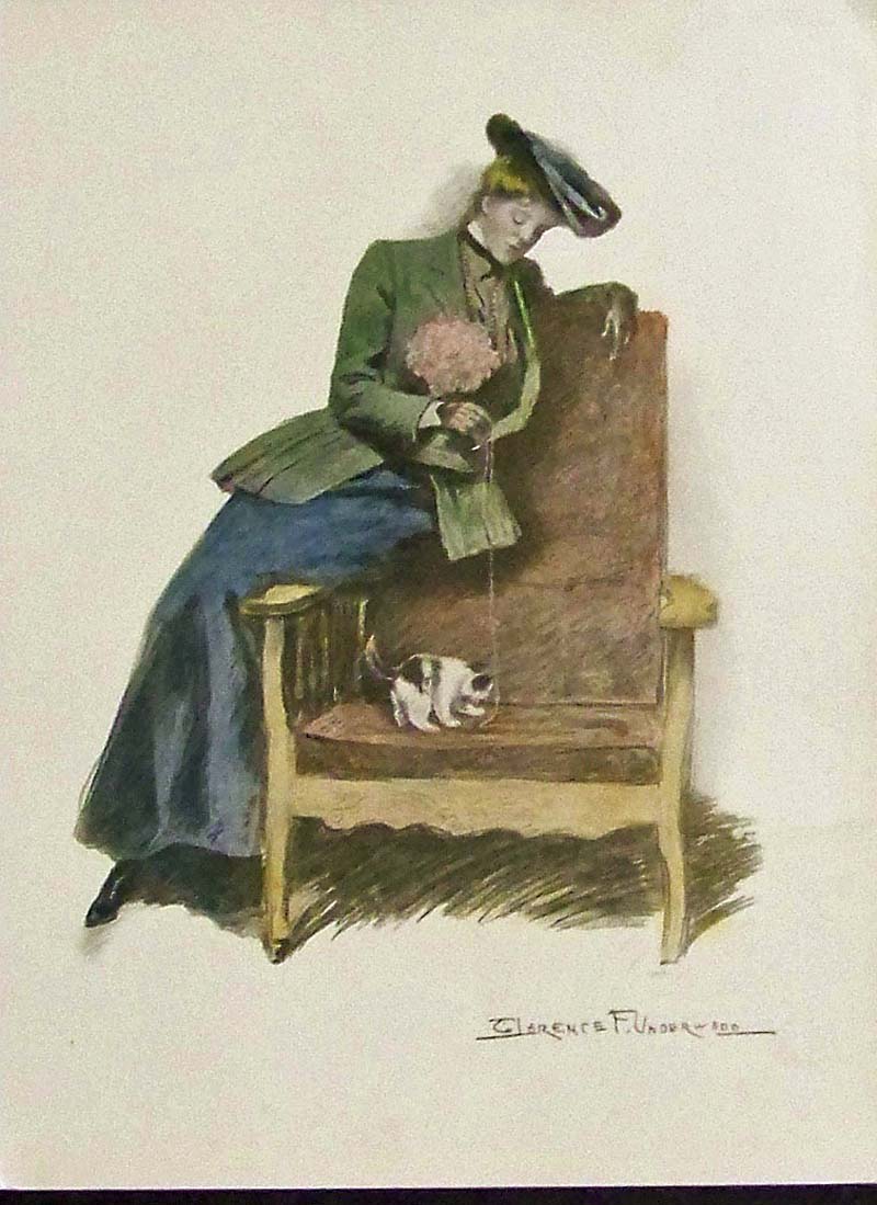 ![]() 028cats: C.1905 Hand colored half-tone engraving by the artist, Clarence F. Underwood which shows a woman hugging her beautiful and fluffy white cat on the back of a tall chair. 11 x 8-1/2 in. $40 ![]() 029cats: C.1905 Hand colored half-tone engraving by the artist Clarence F. Underwood showing a woman sitting on edge of chair dangling some yarn for her playful kitten. 11 x 8-1/2 in. $30 ![]() 030cats: C.1905 Hand colored half-tone engraving by the artist Clarence F. Underwood which features a lady in a long pink gown holding her Maine Coon upon her shoulder. 11 x 8-1/2 in. $40 ![]() 031cats: 1891 Hand color wood engraving titled, "A Cat Catastrophe," showing some cats and a dog getting into mischief by an ad for Beecham's Pills. Featured in The Illustrated News of the World. 15-1/2 x 11 in. $50 ![]() 033cats: 1892 Original chromolithograph titled, "Three Little Kittens" by Helena Maguire. Copyrighted by Montague Marks, NY. Featured in The Art Amateur, No. 226. 15-1/2 x 10-1/2 in. $225 ![]() 035cats: May Day 1884. Lady with beloved kitten & puppy surrounded by Apple Blossoms. 11 x 16 in. $45 |