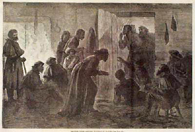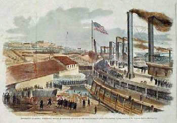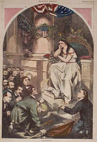 012cw: 1864 Starving Union Prisoners -- NO RESERVE. Front original page from Frank Leslie's Illustrated Newspaper showing emanciated Union soldiers after being returned from Rebel prisons. Seven individual soldiers are shown with their names and regiments. This is a genuine antique engraving. 16 x 11 in. $40 ![]() 015cw: CIVIL WAR ZOUAVES VIEW. Civil War scene inside Fort Pickens, showing groups of soldiers keeping watch, others doing laundry and others marching in formation. Hand colored woodcut engraving from Harper's Weekly, July 27, 1861. 16x11 in. $40 ![]() 016cw: 1865 Post-Civil War Pardons. Important Thomas Nast print of General Lee and Confederates seeking pardon, as promised by the late President Lincoln. A wavering Columbia sits before them, wondering "Shall I Trust These Men?" Hand colored genuine antique engraving. 11x16 in. $50 ![]() 024cw: 1866 Jefferson Davis print by Nast. Thomas Nast contrasts the true suffering of Union prisoners at Andersonville with the comparatively lush accomodations for Jefferson Davis while imprisoned at Fort Monroe. Genuine antique engraving. 11x16 in. $40 ![]() 026cw: 1870 Jefferson Davis by Nast. "Time Works Wonders." Cartoon of Davis as Iago, from Othello. Antique print by Thomas Nast. 11x16 in. $30 ![]() 029cw: Antique Civil War Maps. Several maps on one large page, compiled after the war from officers' field maps. Johnson's Island, OH; Five Forks, VA; Westport and Big Blue, MO; Campaign against Sterling Price; Newtonia, MO, etc. Antique color litho published c.1880. 29x18 in. $80 ![]() 030cw: 1891 Admiral Porter Portrait. Fine black & white antique engraved portrait of Civil War Admiral David D. Porter. From Harper's Weekly, 1891. 11x16 in. $40 ![]() 032cw: CIVIL WAR - SLAVES HARBORING UNION ESCAPEES. Genuine antique engraved Civil War print from Harper's Weekly, 1864. "Escaping Union Officers Succored by Slaves." Escaped Union officers find temporary safe haven in the home of slaves. 16" x 11" $80 ![]() 034cw: General Johnston Portrait. Hand colored antique engraving of the Confederate General. 10-1/2x16-1/2 in. $30 ![]() 018guns: 1861 Shells and their Manufacturers. Several descriptive wood engravings of Civil War Era shell production featured in Harper's Weekly. 15-1/2 x 11 in. $40 |