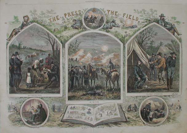 ![]() 038cw: GENERAL GEORGE MEADE PORTRAIT - 1863. Engraved portrait of Major General George C. Meade, from a photograph by Brady. Meade was new Commander of the Army of the Potomac at the time of this portrait, published on the cover of Harper's Weekly, July 11, 1863. Article on Meade on the reverse. Authentic Civil War era engraving - a genuine 137-year-old antique print. 11" x 16" $30 ![]() 040cw: C.1865 Color Civil War map from the Atlas to Accompany the U.S. Government's Official Records of the Union and Confederate Armies, 1861 - 1865. Plate CXLVII displaying the coast of Florida, Mississippi and Georgia. This is a General Topographical Map, Sheet XII. 29 x 18 in. $200 ![]() 101cw: 1864 Civil War: Recruiting Immigrants. Fascinating engraved scene from the Illustrated London News, titled "Enlisting Irish and German Emigrants on the Battery at New York. Shows a scene outside of Castle Garden, the principal entry point for Europeans who were migrating to America. Union Army recruiters are talking with recently arrived immigrants, offering them cash for joining the military. A sign on the left side states that new recruits would be paid a total of $600 for enlisting. A repair has been made to the bottom margin of this print, but the image is completely intact. 11x16 in. $60 ![]() 213tn: 1887 Original Kurz and Allison chromolithograph showing the Capture of General S,B. Buckner and his Army, February 16th, 1862 that took place at the Battle of Fort Donelson. We have only this one original Kurz and Allison chromolithograph but at only $80 each, we have several reprints of Kurz and Allison Civil War images. 26 x 20 in. $400 Check for availability ![]() 103cw: 1862 Civil War: Rebels Destroy Town. Hand colored engraving from Harper's Weekly, titled "John Morgan's Highwaymen Sacking a Peaceful Village in the West." Shows a scene of mayhem and destruction, as Confederate soldiers burn buildings and execute citizens. 11x16 in. $60 ![]() 107cw: 1863 Civil War: Army of the Cumberland. Two hand colored engravings on one page from Harper's Weekly, showing scenes in the Union's Army of the Cumberland: 1) The Courier Line; and 2) Pack Mules in the Mountains. 11x16 in. $50 ![]() 108cw: 1887 Gettysburg Civil War Reunion Scene. Hand colored engraving from Harper's Weekly, titled "The Scene of the Reunion of Union and Confederate Veterans on the Field of Gettysburg." Shows veterans from both sides reminiscing on the battlefield. 16x22 in. $120 ![]() 110cw: 1862 Civil War Union Troops, Cairo Illinois. Hand colored engraving from Harper's Weekly, titled "Embarkation of General McLernand's Brigade at Cairo: The Advance of the Great Mississippi Expedition. January 10, 1862." Shows large numbers of troops filing onto riverboats in preparation for the expedition. 11x16 in. $50 ![]() 111cw: 1895 Infantry and Cavalry Flags. Color lithograph from the official U.S. government atlas of the Civil War. Shows the Union and Confederate flags for the various infantries and cavalries. Each flag is accompanied by the corresponding military unit and date of adoption. 18x28 in. $250 ![]() 112cw: 1861 Civil War: Union Fire Fighters Enlisted. Hand colored engraved scene from the May 25, 1861 Illustrated London News, titled "The War Excitement in New York: Scene in Front of a Fire-Engine House." A crowd is shown gathered in front of several large posters which denounce the Confederacy and call all fire men to arms. 11x16 in. $50 ![]() 119cw: 1866 Portraits of Civil War Union Generals. Hand colored engraved portraits of twelve generals: Stevens, Lytle, Reynolds, Reno, Lyon, Mansfield, Kearney, Mitchell, Taylor, Strong, Bayard and Hiram G. Berry. size: 6.5x9.5 in. $40 ![]() 200cw: RARE Winslow Homer Civil War: Cavalry Charge. Dramatic, engraved scene by Winslow Homer, one of the most famous American artists of the 19th Century. The image is titled "The War for the Union, 1862: A Cavalry Charge." It is from the July 5, 1862 issue of Harper's Weekly. Homer shows a scene in the middle of a heated battle between the Union and Confederate forces. Soldiers are charging at each other with swords drawn, engaged in hand to hand combat. This engraving is in very good condition, with only a few barely noticeable spots of foxing on the image. There is a 4-inch horizontal split along the bottom of the center crease, which has been professionally repaired on the back with archival tape. 16x22 in. $150 ![]() 203cw: Thomas Nast Civil War Election Scenes. This beautiful woodcut engraving is from the Nov. 12, 1864 issue of Harper's Weekly. It was drawn by Thomas Nast, the most famous political cartoonist of the 19th century. The cartoon is titled "Election Day, 8th November 1864." It features Columbia, who symbolized honor and virtue in the United States, casting a vote for Lincoln . Next to the ballot box is Peace, an angel who is being held captive by two demons: "Southern Rebellion" and "Traitors North." Below the main image are three smaller insets: "Soldiers Mailing in their Votes," "The Veterans Vote," and "Citizens Voting." Nast includes several statements under the main image: "The Victory at the Ballot Box will be in Vindication of this Union and of Our Authority," "Down With Slavery," "No Compromise," "Down with the Rebels," and The Election of the Union Candidates will Bring Peace." 16x22 in. $120 ![]() 209cw: Very nice hand colored wood engraving of the American Civil War. Published in 1863 in a French publication called L'Univers Illustre. Page has two scenes, upper titled: Guerre D'Amerique - Le bruleurs de coton. Lower image titled: Guerre D'Amerique - Combat de Olustee, le 20 fevrier. 10.5x16 in. $60 ![]() 210cw: Beautiful hand colored wood engraving from the April 30, 1864 issue of Harper's Weekly. The Press on The Field, by Thomas Nast. This double page spread shows different scenes of a reporters life during the war, including, reporters In Action, Reliable Information, and Contraband News. Upper right corner has been arhivall