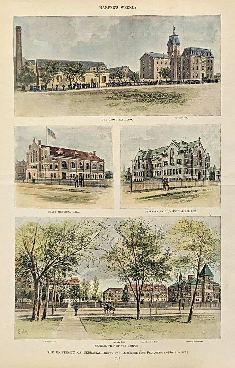 ![]() 217Nebraska: The University of Nebraska. 5 views of area's around the campus. University Hall, Memorial Hall, Cadet Battalion, Nebraska Hall and General view of the campus. 10 3/4 x 15 3/4 in. $80