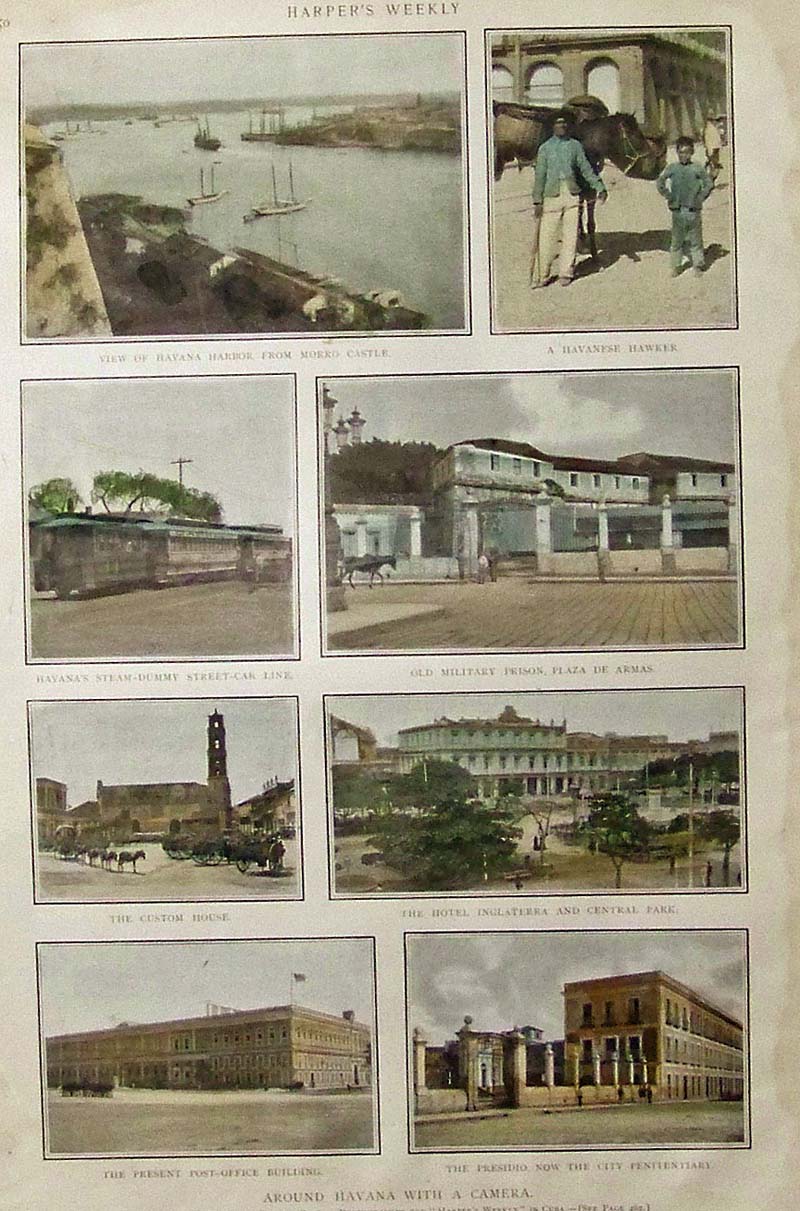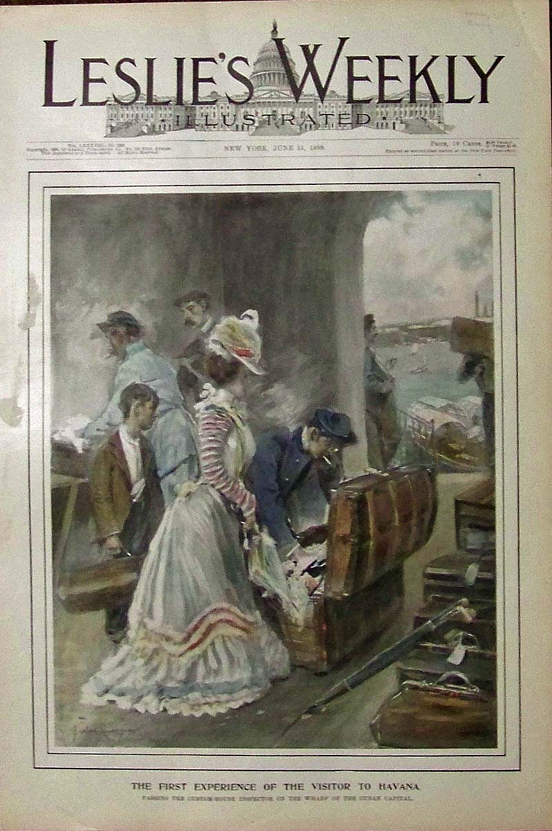 ![]() 033cuba: 1880 Hand colored wood engraving showing the Carnival in Havana -- General Grant in the Procession.Featured in Harper's Weekly, A Journal of Civilization. 15-1/2 x 11 in. $80 ![]() 035cuba: 1899 Hand colored half-tone featured in Leslie's Weekly Illustrated titled, "The First Experience of the Visitor to Havana." Image shows a woman and her family passing the Custom-House Inspector on the Wharf of the Cuban Capital. 16 x 10-1/2 in. $80 ![]() 036cuba: 1859 Harper's Weekly hand colored wood engravings pictorially considered for the Purchase of Cuba. 16 x 11 in. $50 ![]() 037cuba: 1853 Gleason's Pictorial wood engraving showing A View of the Imperial Del Paseo, at Havana, Cuba. 15 x 11 in. $40 ![]() 038cuba: 1853 Wood engraving from Illustrated News showing Cock-Fighting in Havana. 10-1/2 x 9 in. $50 ![]() 039cuba: Hand colored half-tone by W.A. Rogers titled, "Starvation By Proclamation in Cuba." Image shows Guerillas driving Pacificos into one of the Stations of Concentration established by General Weyler. 16 x 11 in. $80 ![]() 040cuba: 1899 Harper's Weekly hand colored half-tone views Around Havana With A Camera. Among views is Havana Harbor from Morro Castle; a Havanese Hawker; Havana's Steam-Dummy Street-Car Line; the old military prison in Plaza De Armas; the Hotel Inglaterra and Central Park; and the Presidio, Now the City Penitentiary. 15 x 10 in. $60 ![]() 041cuba: 1869 Harper's Weekly hand colored wood engraving titled, "Landing Arms for the Patriot Forces on the Coast of Cuba." 16 x 11 in. $50 ![]() 042cuba: 1876 Hand colored wood engraving titled, "Paseo De Isabel II. -- Promenade of Isabella IL, Havana, Cuba." 11 x 8-1/2 in. $30 ![]() 043cuba: 1916 Colorful beer label for Moro Light, Fabrica de Tabacos Superiores. Copyright by A.C. Henschel & Co., Chicago, IL., Registered in U.S. Patent Office. 4-1/2 x 4-1/2 in. $20 ![]() 044cuba: C.1900 Rand McNally West Indies which shows Cuba and has insets of Jamaica and Porto Rico (U.S.A.) included. Featured in the Commercial Atlas of America. 20 x 14-1/2 in. $80 ![]() 045cuba: 1918 Color Commercial Atlas of America, showing Cuba, with insets of Port Matanzas; Cardenas and Santa Clara Bay; Port of Cienfuegos; Port of Santiago De Cuba; and a larger inset of a Map of Havana Harbor. The Cuban Railroads are also depicted. 27-1/2 x 20-1/2 in. $60 ![]() 046cuba: 1934 Color Cuba and West Indies map which features a large inset of the West Indies, as well as smaller insets of Habana; Matanzas; Cienfuegos; and Santiago De Cuba. 21-1/2 x 15-1/2 in. $60 ![]() 029cuba: 1899 Leslie's Weekly Illustrated hand colored half-tone cover titled, "The New Year's Transformation in Havana." Image shows American Troops marching through the streets of the Cuban Capital after its final Evacuation by the Spanish. 16 x 11 in. $80 ![]() 048cuba: 1869 Harper's Weekly hand colored wood engravings showing images and text from The Cuban Revolution. Top left image shows the Railroad Depot in Havana; top right image shows some Palms about the Indian Fountain; and bottom large image shows a Panoramic View of Havana, Cuba. 21-1/2 x 15-1/2 in. $120 ![]() 049cuba: C.1900 Color map of Cuba with a different color for each section. 16 x 11 in. $40 ![]() 203cuba: 1873 Views in Havanna, Santiago de Cuba. Three hand-colored engraved images featured in Harper's Weekly titled, "The Massacre in Cuba -- Havana, from the Lower Batteries of Fortress Cabana." 16 x 22 in. $100 ![]() 044wntr: Ice Skater with Collie cover. 1911 whole issue of Harper’s Weekly 2/18/1911. Articles and photos on McGurdy’s gallant flight to Cuba plus other articles. (28pp total) Color ad for Napoleon flour on back. 10 3/4 x 15 1/2 in. $45 |