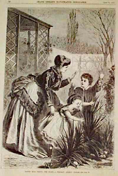 ![]() 004east: 1893 Young Woman in Easter Outfit. Engraving from Once a Week, titled "The Easter Belle." Shows a young woman dressed in a fashionable outfit, with Easter lilies in the background. Below the image is a short poem. 11x16 in. $40 ![]() 005east: 1902 Easter Bunny and Small Child. Color lithographed cover from Puck magazine, showing a young girl selecting eggs from the Easter Bunny's basket. 10x14 in. $40 ![]() 006east: 1871 Easter Egg Hunt Scene. Engraved scene from Frank Leslie's Illustrated Newspaper, titled "Easter Eggs: Finding a Hoard. A Pleasant German Custom." Shows two young children searching for eggs in the garden behind their house. 11x16 in. $30 ![]() 007east: 1880 Church Choir Prepares for Easter. Hand colored engraving from Harper's Weekly, titled "Preparing for Easter. Shows a church choir rehearsing for their Easter performance. A small scene at the top shows four women using flowers to make Easter decorations. 11x16 in. $50 |