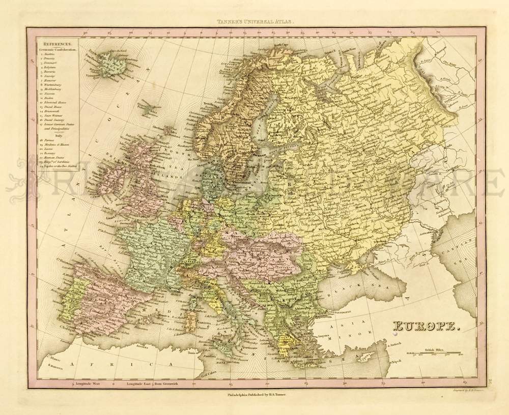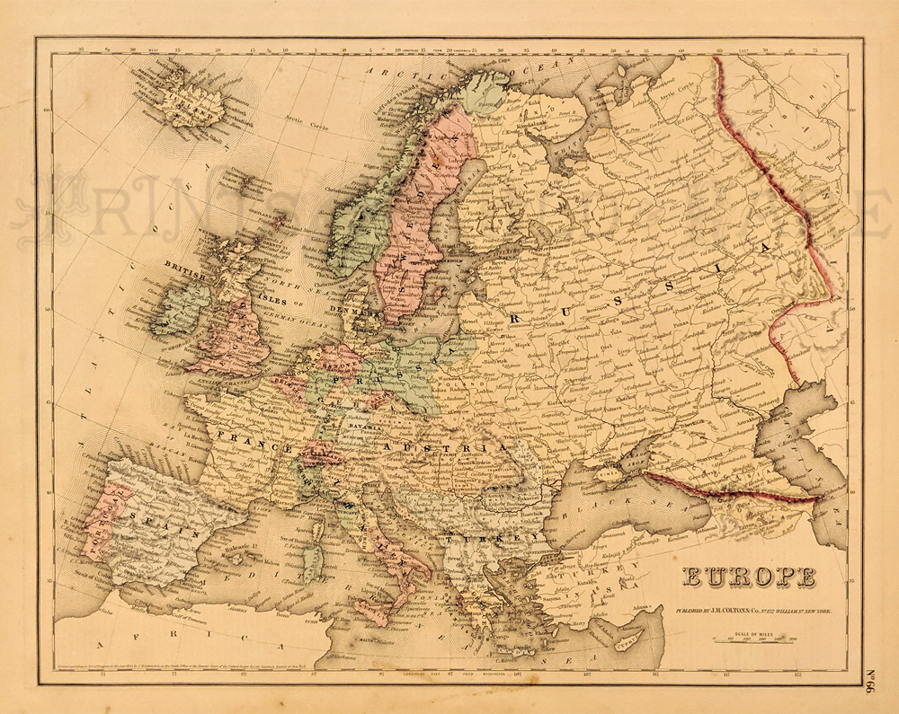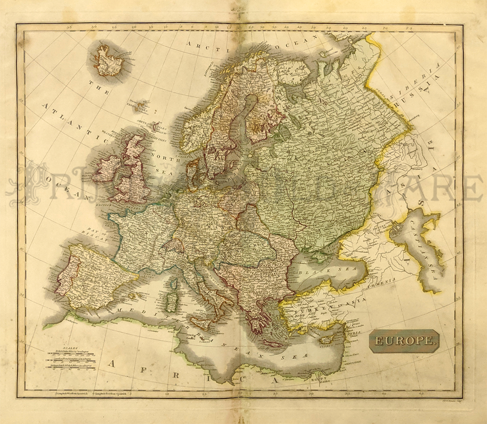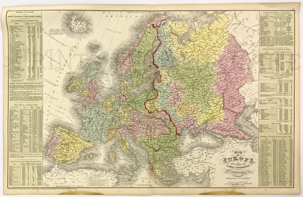 Cowperthwait Map of Europe. Beautifully hand colored, with many