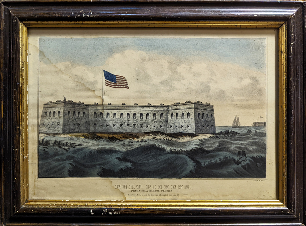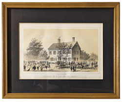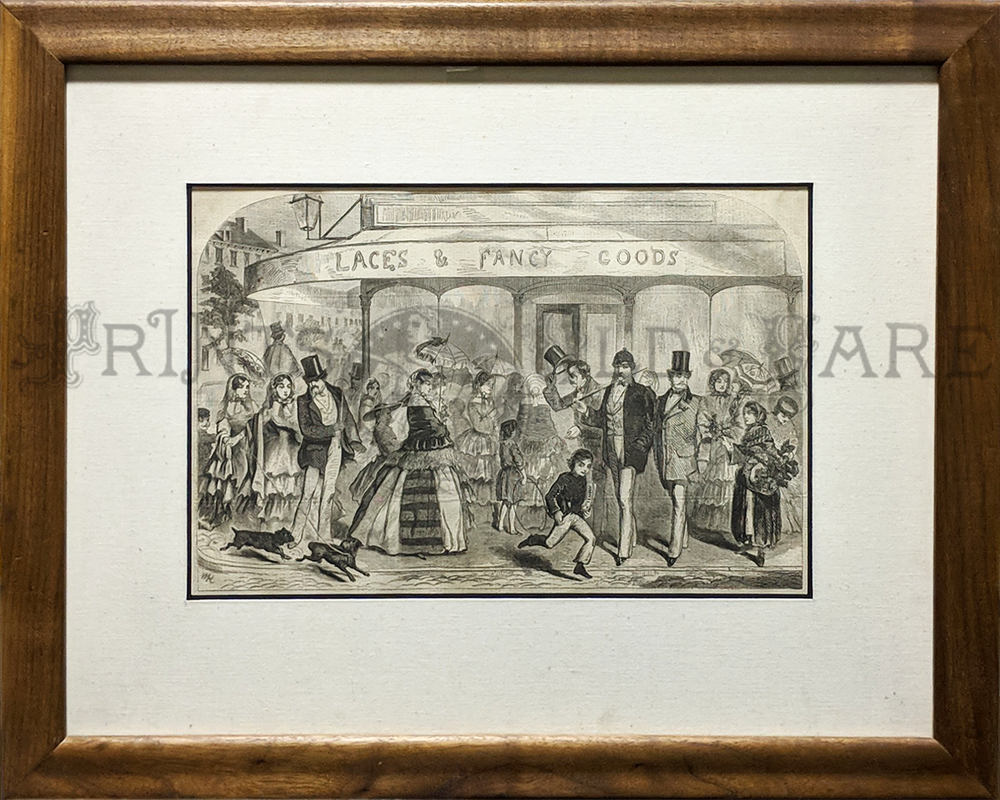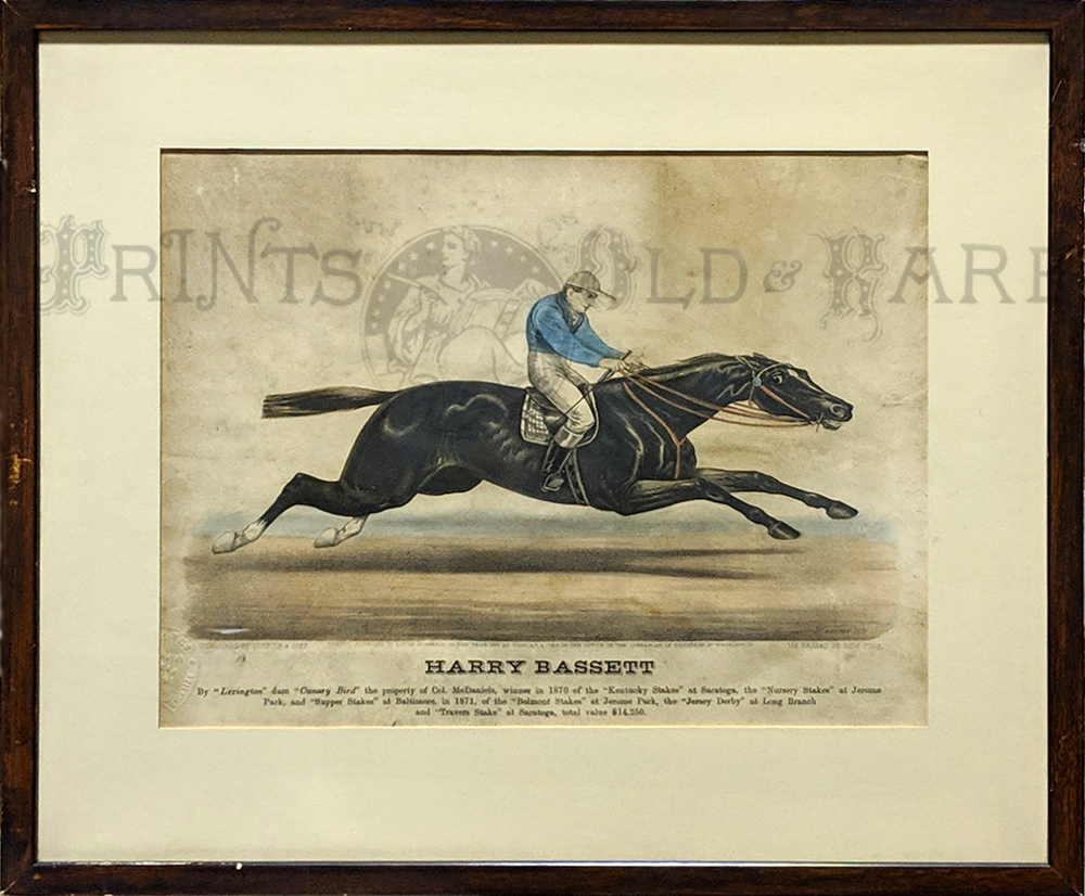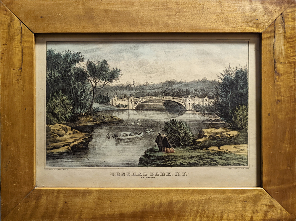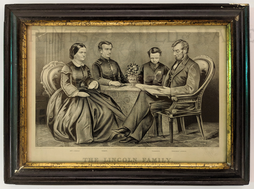 ![]() 030frame: Winslow Homer. Rare Adirondack engraving. "A Winter Morning Shoveling Out" in a beautiful hand rubbed wood frame. Frame size: 18 5/8 x 21 in. in. $450 ![]() 031frame: Rare Winslow Homer 'Residence of W.L. Weston' c.1850. Done when Homer was a teenage apprentice in Boston. This was a book plate concerning Peabody's funeral. Frame size: 8 3/4 x 10 3/4 in. $300 ![]() 395sfo: Oakland Satiric Cartoon c.1885. Wasp Magazine. 6 vignettes, Man from Oakland bragging to San Francisco friends about Oakland’s superior wealthy streets, beauty, etc. Vignette #6: He misses the ferry boat says he’d sooner life in Milpitas! Original lithograph. Museum matting. Frame size: 18 15/16 x 22 3/8 in. $175 ![]() 226linc: 1867 Currier & Ives lithograph in original antique frame titled, "The Lincoln Family," which shows Mrs. Lincoln, Robert, Thaddeus, and President Lincoln sitting at their table listening to President Lincoln read from his book. Framed portrait has a heavy attached wire on back of frame making this ready for hanging on your favorite wall.Frame: 16 x 12-1/2" $400 ![]() 239fra: US Ambulance Service and Red Cross c.1917. Color lithograph by Pellerin (precursor of comics) Shows WWI motorcycles with side cars, ambulances, cook stoves, soldiers and nuns. *Simple wood frame – double matt. Frame: 16 ¾ x 20 ½" $125 ![]() 049mhsm: TUKO-SEE-MATHLA, Seminole - Oak Frame - Museum matted. Frame: 13 1/2 x 16 9/16" $375 SOLD ![]() 328Florida: Ft. Pickens c.1865 Currier and Ives Civil War for near Pensacola. Small folio – period frame. Very good condition – light water stain on left. **Small knicks and scratches throughout frame. Frame: 14 3/8 x 16 3/8" $225 ![]() 101ci: Central Park, NY ‘The Bridge’ – Currier and Ives. Small folio – original period all wood frame. Very good condition. Frame Size: 13 7/8 x 17 7/8" $495 ![]() 212low: Kennemaria et Westfrisia vulgo et vernacular Noord-Holland. c.1680 by Visscher. Wonderful detailed map of Northern region of Holland. 2 outstanding cartouches – attractive old color. Map: 19 ½ x 23 in. - Frame – 27 ½ x 31 1/8 in. $850 ![]() 011rabbit: California Hare – Audubon. C.1850. Original hand colored lithograph museum quality framing. From the classic Audubon Quadrupeds of North America. Frame: 10 5/8 x 13 3/4" $400 |