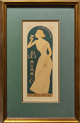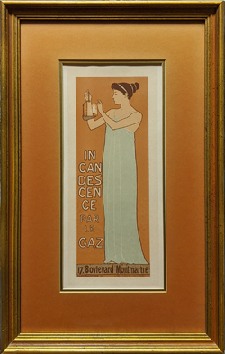 ![]() 019frame: Carrier Dove. c.1860. Original Currier & Ives. Hand colored, lithograph mid-19th century period frame. Frame: 13 1/8 x 17 1/8" $290 ![]() 021frame: Harry Bassett. Currier & Ives. Hand colored, lithograph. 1871. Good condition toning. Framed in dark wood. Frame: 16 1/8 x 18 5/8" $225 ![]() 022frame: Sir Francis Drake c.1745. Copper engraving of the famous 16th century British Explorer. Museum matted in simple wooden frame. Frame: 14” x 19” $125 ![]() 023frame: Maitres de L’affich. Dental ad 1894. “Pate Dentifice du Docteur Pierre” Original lithograph by Louis Maurice Henri Boutet de Monvel. Double mat in beautiful frame. *Small chips on outside frame. Frame: 17 3/8” x 21 ½” $300 ![]() 024frame: Advertising in the Sun (Plate 8) 1896 by Louis Rhead. Perfect condition, framed & double matted. Frame size: 17 5/8 x 23 ¼ in. $600 ![]() 025frame: Incandescence par la Gaz 1896 by Dumas. Condition of this original poster is fine and framed in museum quality mat & frame – double matted in gold leaf frame. Frame: 14 ¾ x 23 5/8 in. – Image Size: 11 ¼ x 15 ½ in. $295 ![]() 026frame: Societe Internationale (Plate 226) 1897 by Maurice Realer-Dumas. Double matted gold leaf frame. Frame size: 17 ½ x 21 3/8 in. $350 ![]() 027frame: Champagne Jules Mumm & Co. 1897 by Maurice Realer-Dumas. Beautifully double matted in wooden frame. Lithograph. Image size: 11 ½ x 15 ¼ in. – Frame size: 14 ¼ x 23 ¼ in. $700 ![]() 028frame: Folies Bergere (Plate 113) 1893 by Jules Cheret. Excellent condition. Triple matted in gold leaf frame. Frame size: 16 7/8 x 20 3/8 in. $1200 ![]() 029frame: olies-Bergere 1896 by Jules Cheret. Excellent condition. Triple matted gold leaf frame. Frame size: 16 3/8 x 19 ¾ in. $495 |