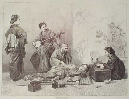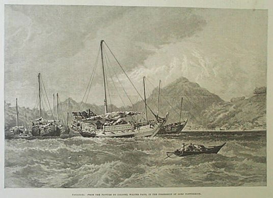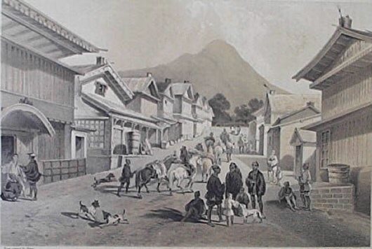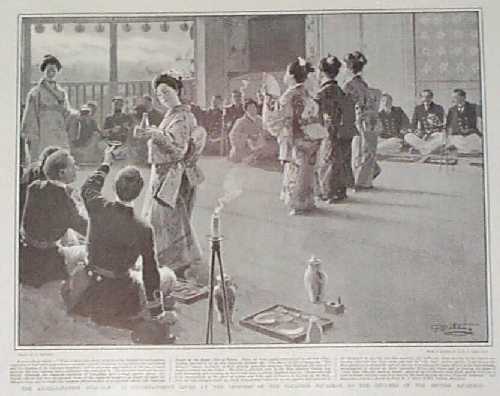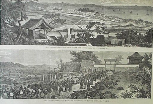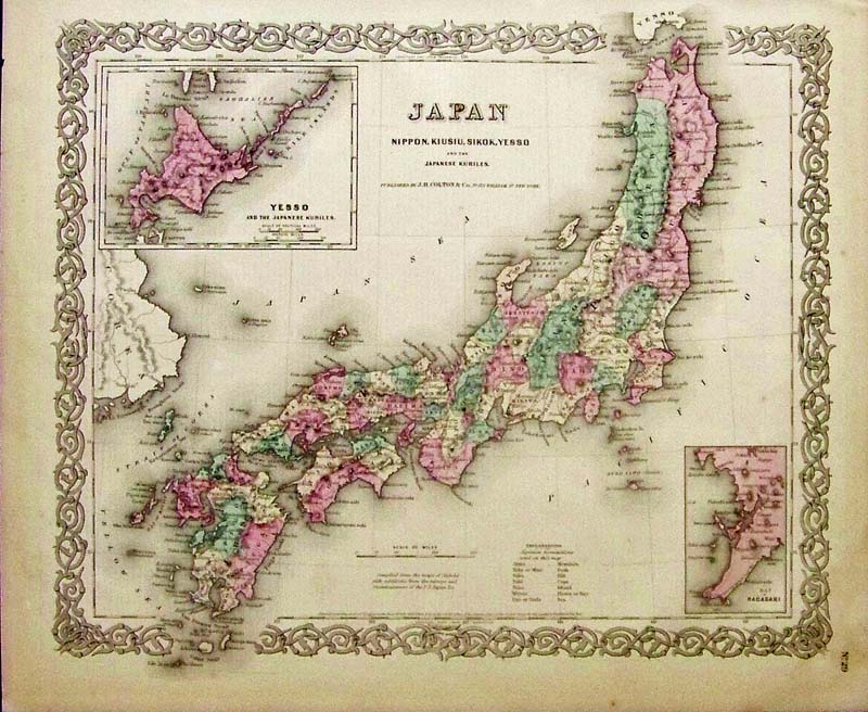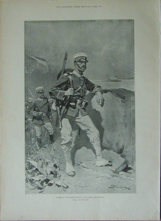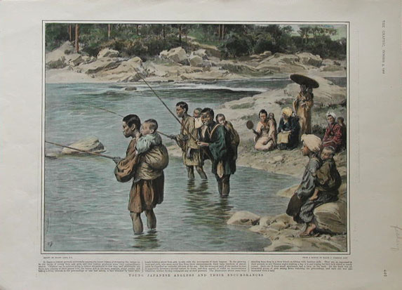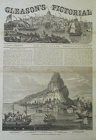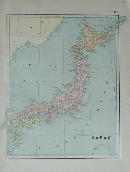 ![]() 002jpn: 1870 Scene: Shampooing in Japan. Engraved view of a Japanese lady preparing to have her hair washed, with several attendants and a musician looking on. From the May 14, 1870 issue of Every Saturday, a popular 19th century news weekly. 11x16 in. $30 ![]() 003jpn: 1902: Japanese Women Entertaining British and Japanese Naval Officers. This is an antique halftone print from the August 30, 1902 issue of The Graphic, a British news weekly. Title is "The Anglo-Japanese Alliance: An Entertainment Given by Officers of the Japanese squadron to the Officers of the British Squadron." Beneath the image is a short article by one of the British officers, describing the scene. 11x16 in. $30 ![]() 005jpn: 1884 Map of Japan, published by A & C Black of Edinburgh Scotland. Provinces within the country are colored separately. The bottom right corner contains a small inset map of the area around Tokyo. 13x17 in. $50 ![]() 007jpn: Map of Japan and Korea from the 1897 Edition of the Century Atlas. Detailed, color map shows cities, towns, provincial borders and geographical features. The right side contains inset maps of the Kurile Islands, Liu-Kiu Islands and Formosa (Taiwan). 12x16 in. $30 ![]() 008jpn: 1867 Japanese Scenes: Prince's Summer Palace, and Army Officer in Armor. Two beautiful engraved views from the Feb. 2, 1867 issue of the Illustrated London News. Top view is titled "The Summer Palace of Prince Satzuma." Bottom view is "Japanese High Officer and Sword-Bearer in Armor." There is a black ink stain on the edge of the left margin, but the image is not affected. 11x16 in. $30 ![]() 009jpn: 1865 Military Scene in Yokohama. Engraved image from the Jan. 7, 1865 issue of the Illustrated London News. Title is "Review of British and Japanese Troops at Yokohama." A group of spectators from both nations are standing in the foreground. 11x16 in. $30 ![]() 011jpn: 1870 Japanese Ladies Print. Beautiful engraved print published in an 1870 issue of Harper's Weekly shows two Japanese ladies on the streets of Japan. Lovely print is accompanied by short text. 11x16 in. $30 ![]() 012jpn: 1860 Japanese Priest and Temple. Handsome engraving from an 1860 issue of Frank Leslie's Illustrated Newspaper shows a Japanese priest and the interior of a temple in Japan. Print is accompanied by an article that describes the presentation of gifts from the US to Japanese authorities. 11x16 in. $30 ![]() 014jpn: 1877 View of Nagasaki. Handsome, wood-engraved print from an 1877 issue of The Illustrated London News shows Nagasaki harbor. 11x16 in. $30 ![]() 015jpn: 1891 Japanese Festival Scene. Large, engraved print published in an 1891 issue of Harper's Weekly shows crowds gathered during a Japanese Festival. The title is, "Japanese Festival To Hoko Dashi." 16x22 in. $50 ![]() 016jpn: 1854 Mount of Pleasure View. Wood engraving published in an 1854 issue of Gleason's Pictorial shows Pauromama, or Mount of Pleasure, in Japan. 11x16 in. $30 ![]() 017jpn: 1868 Scenes of Japanese Revolution. Two wood engravings published in an 1868 issue of Harper's Weekly show a view of Yokohama, Japan and the Palace of the Tycoon in Jeddo, Japan's capital city. 11x16 in. $30 ![]() 018jpn: 1854 Japanese Views and Court Dresses. Large, old wood engraved print published in an 1854 issue of Gleason's Pictorial Drawing-Room Companion shows views of Jeddo and a Dutch factory at Firato. Other wood engravings illustrate the court dresses of Japan. 15x22 in. $50 ![]() 019jpn: 1860 Japanese Mother and Child. Beautiful, color lithograph published as an illustration to a book circa 1850 shows a portrait of mother and child in their native Japanese dress. The print was based on the Mathew Perry expedition of 1853. 8x11 in. $50 ![]() 020jpn: 1860 Delivery of President's Letter. Attractive lithograph published as an illustration to a book shows a letter from the US President being delivered to Japanese authorities. This print is based on the Mathew Perry expedition of 1853-1854 that forced Japan into trade and diplomatic relations with the west after two centuries of isolation. Light age spots around the border do not detract from the print. 8x11 in. $50 |