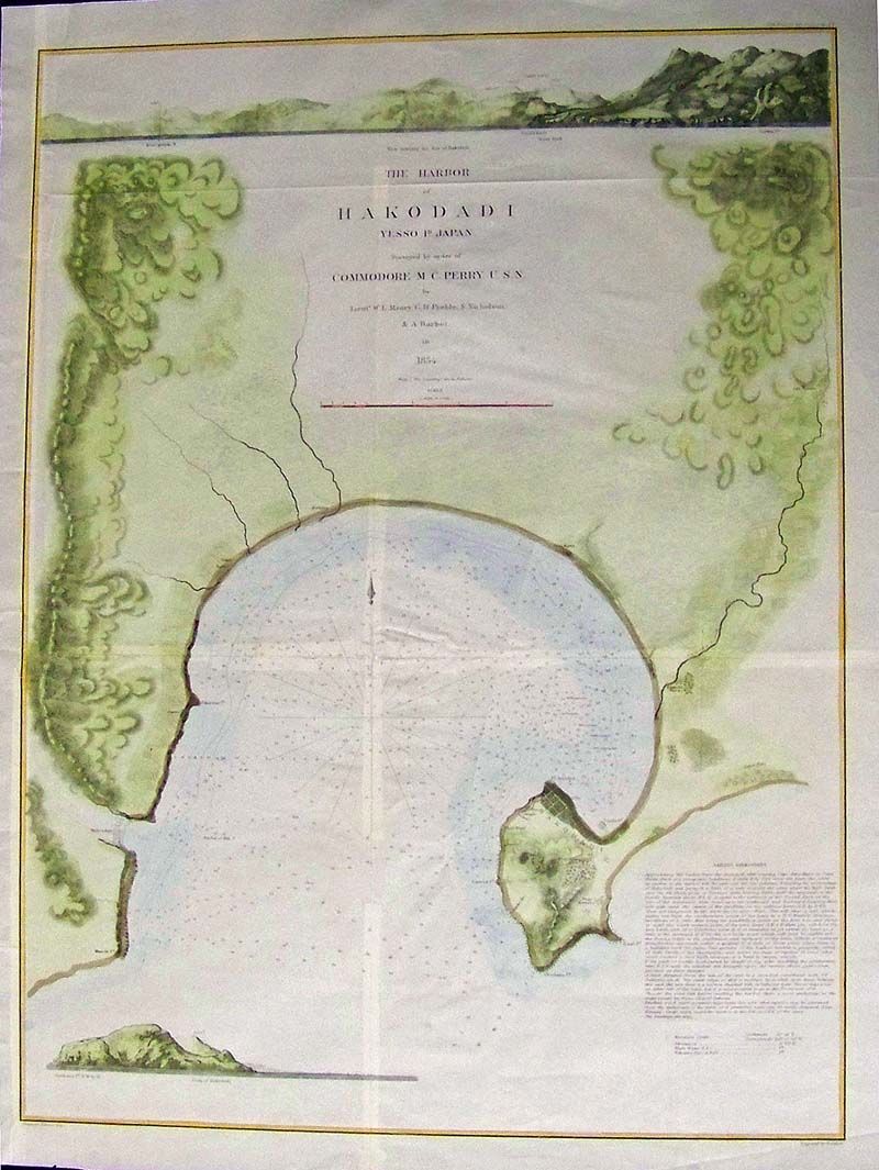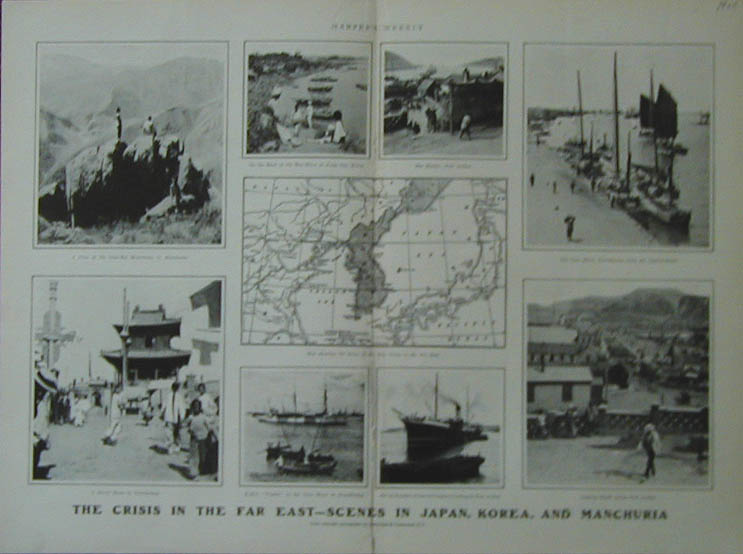 ![]() 021jpn: 1860 Japanese Funeral. Impressive lithograph published as an illustration to a book circa 1860 shows a Japanese funeral procession at Simoda. The print was based on observations during the Mathew Perry expedition. 9x11 in. $40 ![]() 022jpn: 1860 Japanese Boats. Lithograph published as an illustration to a book in 1860 shows a Japanese boat and its various sections. The print was based on observations during the Mathew Perry expedition. 9x11 in. $40 ![]() 023jpn: 1860 Japanese Street Scene. Lithograph published as an illustration to a book in 1860 shows a street scene in Hakodadi. The print was based on observations during the Mathew Perry expedition in 1853. 9x11 in. $40 ![]() 024jpn: 1860 Portrait of Japanese Authority. Lithograph published as an illustration to a book in 1860 shows a portrait of Kura Kawa Kahai, the prefect of the town of Simoda. The print was based on observations during the Mathew Perry expedition. 9x11 in. $40 ![]() 025jpn: 1860 Yokohama Scene. Lithograph published as an illustration to a book in 1860 shows American presents arriving at Yokohama. The title is, "Delivering of the American Presents at Yokohama." The delivery of presents was meant as a gesture of good will to help open up trade with Japan. The print is based on the Mathew Perry expedition in 1853-1854 that forced Japan into trade and diplomatic relations with the West after two centuries of isolation. 9x11 in. $40 ![]() 026jpn: 1855: Fire Fighters in Japan. Interesting lithograph from the 1855 U.S. Government report of Commodore Perry's expedition to Japan. Title of the scene is "Fire Company's House & Engine, Yokuhama." Commodore Perry was sent to Japan in a successful effort to establish trading ties with the Japanese government. The report from his voyage contained many lithographed views of the Japanese people and countryside. 8x10 in. $60 ![]() 028jpn: 1854 Hakodadi Harbor (Hokkaido). Original lithograph from Perry's Expedition to Japan in 1854. Inset of Hakodadi Peak and Entrance to Bay. Hand colored and in fine condition. 25-1/2 x 20 in. $225 ![]() 030jpn: 1855 J. H. Colton original hand colored engraved map showing Japan with Nippon, Kiusiu, Sikok, Yesso, and the Japanese Kuriles. There is an inset top left showing Yesso and the Japanese Kuriles and an inset, bottom right showing the Bay of Nagasaki. 17-1/2 x 14-1/2mk in. $75 ![]() 031jpn: Nagasaki "Geisha Girls" with Uncle Sam's Returning Soldiers. Scene shows American Officers from Oregon in a tea house. 1898 Hand colored half-tone engraving featured in Leslie's Weekly. 22-1/2 x 16 in. $70 ![]() 100jpn: 1901: Map of Korea, Lower Manchuria, with adjacent portions of China, Japan, and Siberia, and the International Neutral Zones: Liao-Tung, Wei-Hai-Wei, and Kiao-Chau. Compiled from the U.S. Consular, War and Navy Departments' Reports, Railway and Concessions surveys.Published by Geo. F. Oram, New York 14.5x22 in. $30 ![]() 103jpn: 1900: Actors in the Chinese Drama: A Japanese Infantryman. This beautiful engraving is from the September 1, 1900 edition of The Illustrated London News. Size: 11x16 in. $30 ![]() 104jpn: 1908: An Example to Russia: House-Cleaning by Law. Remarkable Precautions Taken against the Plague in Japan. This print is from the October 3, 1908 edition of The Illustrated London News. The two photos show: Officers of the law as housemaids: The contents of the Japanese shops and residences turned into the streets while the buildings are cleaned by the authorities. Size: 11x16 in. $30 ![]() 103jpn: 1904: The Crisis in the Far East-Scens in Japan, Korea, and Manchuria. This double page print is from a Harpers Weekly. It shows scenes of the Liao-Hsi Mountains (Manchuria), The Han River (Korea), The Harbor (Port Arthur), The Liao River, (Newchwang), H.M.S. "Vestal," in Liao River, street scene in Newchwang, Russia's Armored cruisers coaling at Port Arthur, looking south across Port Arthur and a map showing the Scene of the War Crisis in the Far East. Size: 11x16 in. $30 ![]() 204nav: 1853 Hand colored wood engraving showing Commodore Perry bound for Japan. Superb views of Perry's fleet opening Japan to trade.Featured in the Drawing-Room Companion. 22 x 15 in. $350 ![]() 106jpn: 1904: The European and Asiatic Rivals in the Far East: The Mikado. His Imperial Majesty Mutsuhito, Emperor of Japan. This beautiful engraving is from the January 30, 1904 edition of the Supplement to the Illustrated London News. Size: 11x16 in. $30 |
