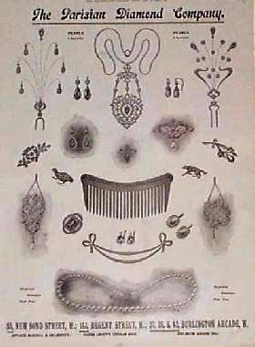 006jwl: 1903 London Jewelry Store Ad. Full-page advertisement for the Parisian Diamond Company, a fashionable jewelry store in London's west end. Examples of the store's jewelry are shown. 11x16 in. $35 |