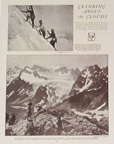 ![]() 005moun: 1873 View: Climbing Mont Blanc. Engraved image from Picturesque Europe, showing a group of mountain climbers ascending Mont Blanc in the Swiss Alps. 8x10 in. $25 ![]() 007moun: 1920 Scenes: Climbing in the Alps. Photographic series from The Graphic, showing mountain climbers and guides on the spectacular slopes of the Alps. There are several small holes on the center vertical crease, but they are not visually distracting. 16x22 in. $40 ![]() 008moun: 1921 Oregon, Washington Mountain Views. Photographs from Country Life magazine, showing climbers on the slopes of Mount Hood OR and Mount Olympus WA. 10x14 in. $25 |