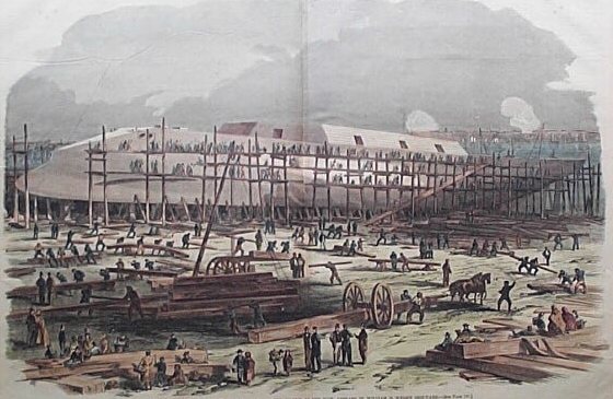 ![]() 002nav: 1898 Flagship New York. Views of the ship in Key West, Florida at the time of the Spanish American War. Black and white photos with text. Genuine antique from Harper's Weekly. 11x16 in. $30 ![]() 003nav: 1854 Battleship Engravings. Two Gleason's pages showing cutaway views and giving descriptions of a tall ship. Antique black & white engravings. Each page 10-1/2x15 in. $40 ![]() 007nav: 1879 Life on an American Man of War. Three black & white engraved views, and text. Original antique print from Leslie's. 11x16 in. $30 ![]() 008nav: 1898 "On the Way to Manila, Officers of S.S. Newport Playing Cards." Major Thompson, signal corps. and Major Simpson, chif of artillery are pictured playing cards. This lovely black and white halftone was drawn by G.W. Peters. size: 11x16 in. $30 ![]() 105nav: 1863 View of the ship "Dunderberg." Large, colored wood engraving published in an 1863 issue of Harper's Weekly shows the Dunderberg, one of the greatest man-of-war in the world. Rare, collectible print. 16x22 in. $100 |