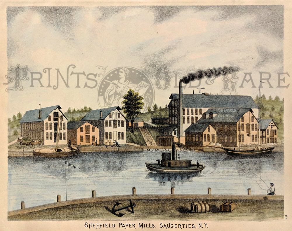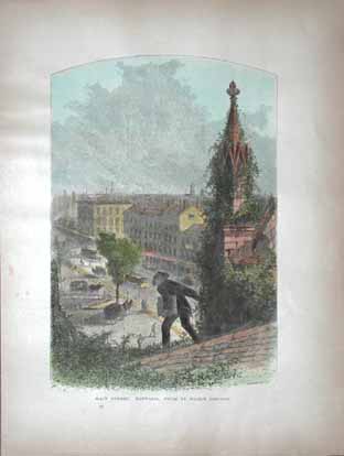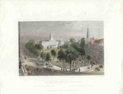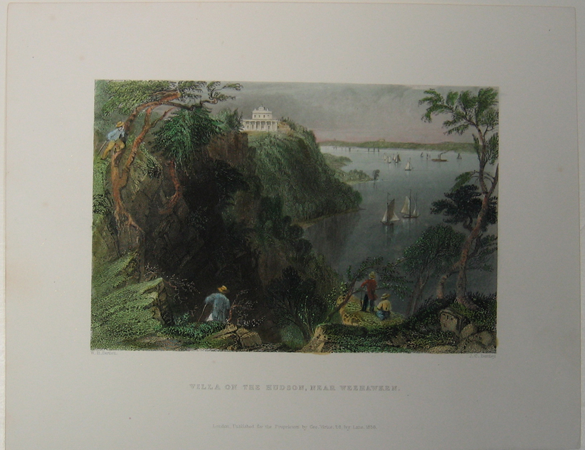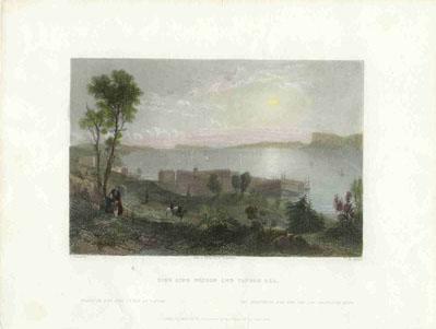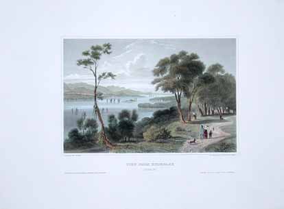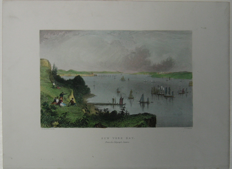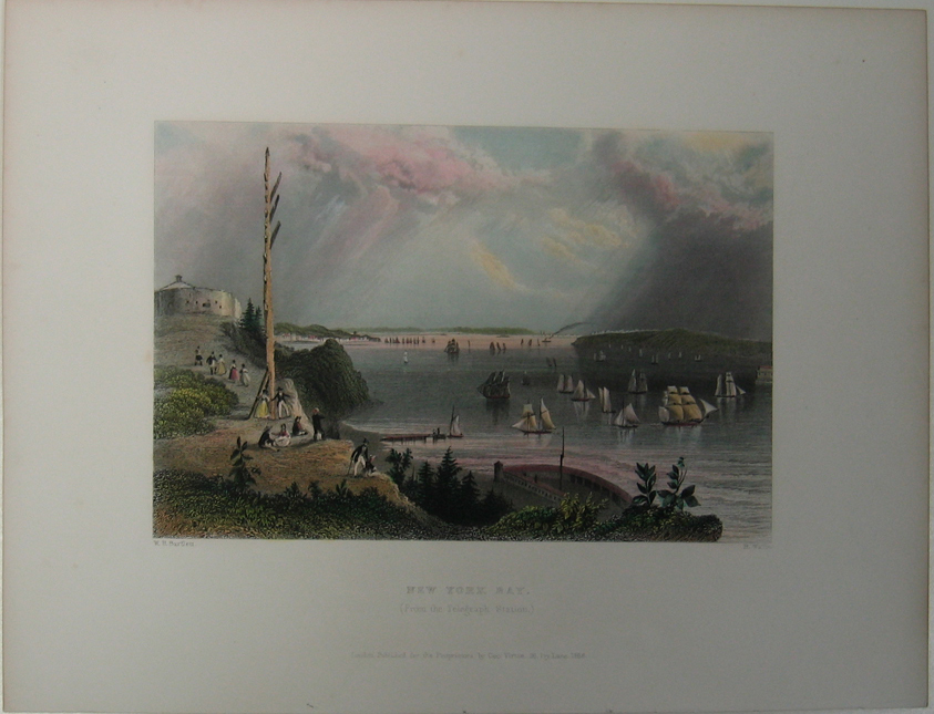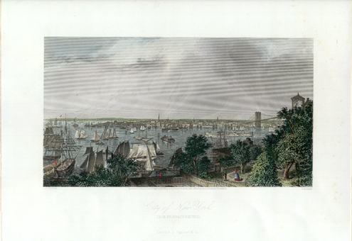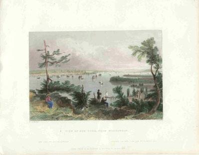 ![]() 299NewYork: 1809 Hand colored copper engraved map showing Western New York in 1809. Lake Ontario is prominent with surrounding geography and a smaller Lake Erie on the left. 10 x 9 in. $160 ![]() 300NewYork: Survey for a Ship Canal around the Falls of Niagara. 1835. This map depicts an artificial harbor as part of a proposal route to Lake Erie to Lake Ontario by W. G. Williams. Insets: Termination section of locks and plan for artificial harbor. 48 1/4 x 31 in. $495 ![]() 254NewYork: Map of the Railroads of New York State 1868, Bradford - A very rare and large lithographed map of New York state railroads, original colors, blue and tan with an amazing decorative border including eagles on US shields at corners. This is one of the most important early railroad maps of America and it extends from Lake Ontario and Lake Erie to includes the Grand Trunk Railway in Canada. Connecticut, New Hampshire and Massachusetts are included and it extends down to Long Island. Inset legend includes length of railroads in operation, prepared under the direction of V. Richmond and S. Sweet State engineers. An extremely detailed map and must have railroad map for collectors. Condition: Good some mottling inside image with two lateral folds, margins slightly torn but not into image, one vertical fold in middle. size 30 x 23.5 image. $1,500 ![]() 112ny: 1873 View of Buffalo New York. Hand colored, engraved bird's- eye view of the city of Buffalo. Published in Picturesque America, an 1873 book about American scenery. 9x12 in. $40 ![]() 114ny: 1886: New York Army Regiment on Parade. Hand colored engraving from Frank Leslie's Illustrated Newspaper, titled "The New York Seventh Regiment in Washington: The Popular Welcome. Scene on Pennsylvania Avenue." Shows the regiment marching down the avenue at night, with cheering crowds and fireworks. 11x16 in. $50 ![]() 115NewYork: 1836 Rare lithographed hand colored Survey of the Harbor of Whitehall, August, 1836. Lake Champlin is shown in great detail. 37 x 12 in. $400 ![]() 120ny: 1848 This familiar and beautiful hand colored print for 1768 that was reprinted in 1848 by Pease and Co. is titled "South West View of the City of New York. It details the harbour, Mulling Island, Staten Island, Rulgars House, South River and Brew House. size: 4.25x6.5 $50 ![]() 122ny: 1886 Coaches at Jerome Park on a Race Day. This hand colored engraving shows fans picnicking in the middle field and crowds in the stand on race day. This antique print is from the June, 1886 edition of Harper's Weekly. 11x16 in. $50 ![]() 123ny: 1907 Talk of New York sheet music. Cohan & Harris present Victor Moore in his famous character Kid Burns in Geo.M. Cohan's "Talk of New York." Size: 14x10.5 in. $30 ![]() 124ny: Beautifully hand colored steel engraving. Published by Herrmann J Meyer in Meyer's Universum c 1850. Picture titled, Das Grab Cosciusco's zu Westpoint am Hudson (Verein, Staaten). 7.5x10 in. $75 ![]() 204ny: 1873: Ithaca New York Cornell Scene. This hand colored, wood-engraved print was published in 1873 as an illustration to Picturesque America, a book about American scenery. The print is titled "Vicinity of Ithaca." It contains four small images, each with its own caption: 1) Enfield Falls; 2) Buttermilk Ravine; 3) Buttermilk Falls; and 4) Cornell University. This print is in excellent condition. 9x12 in. $40 ![]() 205ny: Beautifully hand colored steel engraving. Published by Herrmann J Meyer in Meyer's Universum c 1850. Picture titled, Scene Among the Highlands on Lake George. 7.5x10 in. $75 ![]() 206ny: 1882 Issue of Harper's Weekly. Sailors' Snug Harbor, Staten Island - The Work-room. Drawn by T. De Thulstrup. Center fold has been archivally re-enforced. 15.5x22 in. $50 ![]() 207ny: Beautifully hand colored steel engraving. Published by Herrmann J Meyer in Meyer's Universum c 1850. Picture titled, View From HydePark (Hudson). 7.5x10 in. $75 ![]() 209ny: Double page spread from an 1896 issue of Harper's Weekly. Opening of the Season at the Larchmont Yacht Club, New York. Seven color scenes showing various views of the club and its grounds. Drawn by T. De Thulstrup and Charles Mente. 22x16 in. $150 ![]() 211ny: C.1850 View of Troy, From Watervliet Arsenal. Beautiful hand colored steel engraving. 9x6 in. $60 ![]() 214ny: View of the Passaie Falls. Beautiful hand colored steel engraving by Bartlett. Published in 1839. 10.5x8 in. $50 ![]() 215ny: 1873 Detailed map of part of Suffolk County showing property owners by name and proposed railroad lines. Includes the towns of Babylon, Huntington and Comamac. This pastel hand colored lithograph is in excellent condition. 25x14 in. $120 ![]() 220ny: 1838 View of men looking at a villa on the Hudson, near Weehawken. Gorgeous hand colored steel engraving titled,"Villa on the Hudson, Near Weehawken," by Bartlett. Shows scene of men looking at a villa on the Hudson, near Weehawken. 9 1/2 x 7in. $60 ![]() 224ny: 1838 New York Bay view. Gorgeous hand colored steel engraving titled,"New York Bay, From The Telegraph Station" by J.P. Houston. 7 1/2 x 6in. $50 ![]() 225ny: 1838 New York Bay view with many sail boats. Gorgeous hand colored steel engraving titled,"New York Bay (From The Telegraph Station)" by Bartlett. 9-1/2 x 7in. $50 ![]() 228ny: 1838 Picture of The Narrows from Fort Hamilton. Beautifully hand colored steel engraving titled,"The Narrows," by Bartlett. Shows scene of The Narrows from Fort Hamilton. 9 1/2 x 7in. $60 ![]() 235ny: 1883 Picture of street characters in New York. Elegant hand colored wood engraving titled,"Street Characters in New York-The Tooth-Wash Vender-Testing His Wares," from Frank Leslie's Illustrated Newspaper. Shows scene of street characters in New York. 11 x 16in. $50 SOLD ![]() 239ny: 1882 Picture of a New York City Horse Drawn Hospital Ambulance Service. Beautifully hand colored wood engraving titled, "New York City-An Incident of the Hospital Ambulance Service-Praying for the Dying" from Frank Leslie's Illustrated New