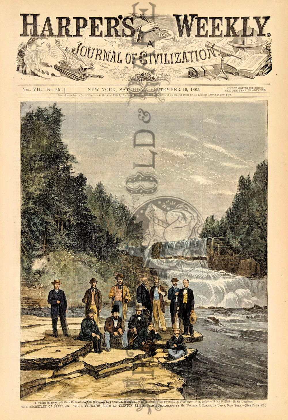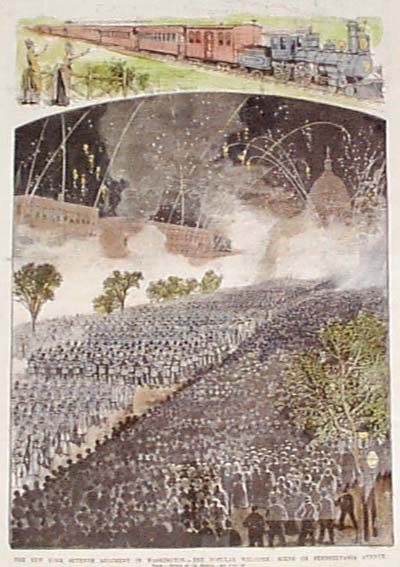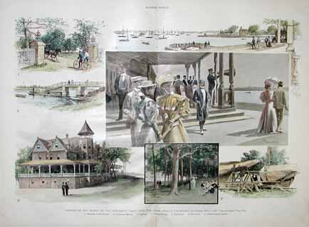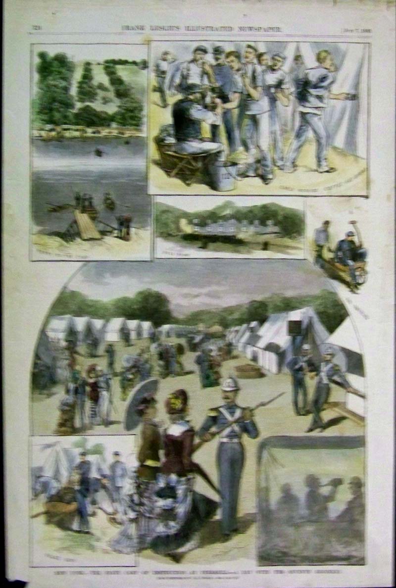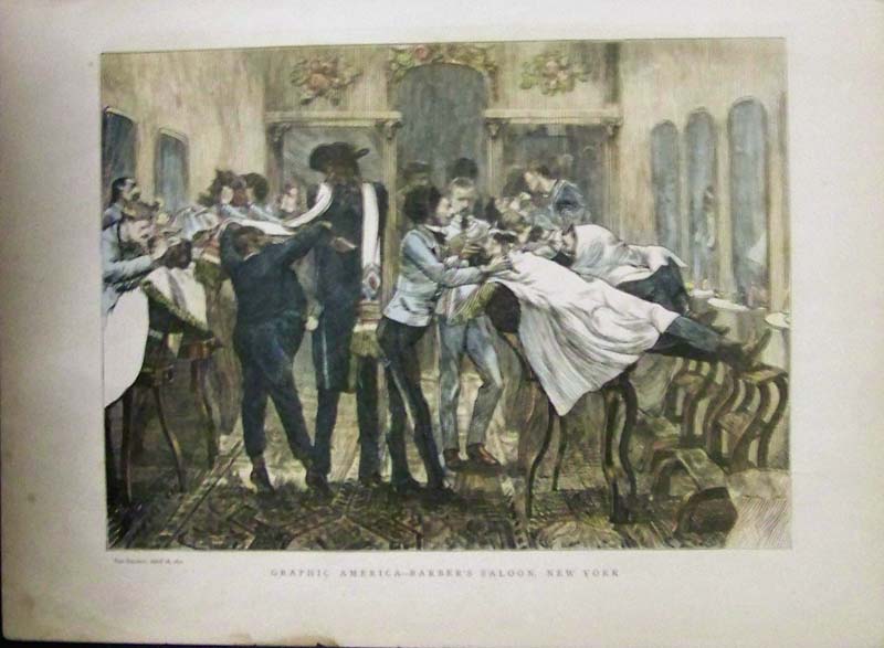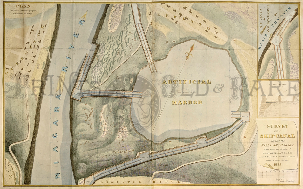![]() 299NewYork: 1809 Hand colored copper engraved map showing Western New York in 1809. Lake Ontario is prominent with surrounding geography and a smaller Lake Erie on the left. 10 x 9 in. $160 ![]() 300NewYork: Survey for a Ship Canal around the Falls of Niagara. 1835. This map depicts an artificial harbor as part of a proposal route to Lake Erie to Lake Ontario by W. G. Williams. Insets: Termination section of locks and plan for artificial harbor. 48 1/4 x 31 in. $495 ![]() 254NewYork: Map of the Railroads of New York State 1868, Bradford - A very rare and large lithographed map of New York state railroads, original colors, blue and tan with an amazing decorative border including eagles on US shields at corners. This is one of the most important early railroad maps of America and it extends from Lake Ontario and Lake Erie to includes the Grand Trunk Railway in Canada. Connecticut, New Hampshire and Massachusetts are included and it extends down to Long Island. Inset legend includes length of railroads in operation, prepared under the direction of V. Richmond and S. Sweet State engineers. An extremely detailed map and must have railroad map for collectors. Condition: Good some mottling inside image with two lateral folds, margins slightly torn but not into image, one vertical fold in middle. size 30 x 23.5 image. $1,500 ![]() 112ny: 1873 View of Buffalo New York. Hand colored, engraved bird's- eye view of the city of Buffalo. Published in Picturesque America, an 1873 book about American scenery. 9x12 in. $40 ![]() 114ny: 1886: New York Army Regiment on Parade. Hand colored engraving from Frank Leslie's Illustrated Newspaper, titled "The New York Seventh Regiment in Washington: The Popular Welcome. Scene on Pennsylvania Avenue." Shows the regiment marching down the avenue at night, with cheering crowds and fireworks. 11x16 in. $50 ![]() 115NewYork: 1836 Rare lithographed hand colored Survey of the Harbor of Whitehall, August, 1836. Lake Champlin is shown in great detail. 37 x 12 in. $400 ![]() 120ny: 1848 This familiar and beautiful hand colored print for 1768 that was reprinted in 1848 by Pease and Co. is titled "South West View of the City of New York. It details the harbour, Mulling Island, Staten Island, Rulgars House, South River and Brew House. size: 4.25x6.5 $50 ![]() 122ny: 1886 Coaches at Jerome Park on a Race Day. This hand colored engraving shows fans picnicking in the middle field and crowds in the stand on race day. This antique print is from the June, 1886 edition of Harper's Weekly. 11x16 in. $50 ![]() 123ny: 1907 Talk of New York sheet music. Cohan & Harris present Victor Moore in his famous character Kid Burns in Geo.M. Cohan's "Talk of New York." Size: 14x10.5 in. $30 ![]() 124ny: Beautifully hand colored steel engraving. Published by Herrmann J Meyer in Meyer's Universum c 1850. Picture titled, Das Grab Cosciusco's zu Westpoint am Hudson (Verein, Staaten). 7.5x10 in. $75 ![]() 204ny: 1873: Ithaca New York Cornell Scene. This hand colored, wood-engraved print was published in 1873 as an illustration to Picturesque America, a book about American scenery. The print is titled "Vicinity of Ithaca." It contains four small images, each with its own caption: 1) Enfield Falls; 2) Buttermilk Ravine; 3) Buttermilk Falls; and 4) Cornell University. This print is in excellent condition. 9x12 in. $40 ![]() 205ny: Beautifully hand colored steel engraving. Published by Herrmann J Meyer in Meyer's Universum c 1850. Picture titled, Scene Among the Highlands on Lake George. 7.5x10 in. $75 ![]() 206ny: 1882 Issue of Harper's Weekly. Sailors' Snug Harbor, Staten Island - The Work-room. Drawn by T. De Thulstrup. Center fold has been archivally re-enforced. 15.5x22 in. $50 ![]() 207ny: Beautifully hand colored steel engraving. Published by Herrmann J Meyer in Meyer's Universum c 1850. Picture titled, View From HydePark (Hudson). 7.5x10 in. $75 ![]() 209ny: Double page spread from an 1896 issue of Harper's Weekly. Opening of the Season at the Larchmont Yacht Club, New York. Seven color scenes showing various views of the club and its grounds. Drawn by T. De Thulstrup and Charles Mente. 22x16 in. $150 ![]() 211ny: C.1850 View of Troy, From Watervliet Arsenal. Beautiful hand colored steel engraving. 9x6 in. $60 ![]() 214ny: View of the Passaie Falls. Beautiful hand colored steel engraving by Bartlett. Published in 1839. 10.5x8 in. $50 ![]() 215ny: 1873 Detailed map of part of Suffolk County showing property owners by name and proposed railroad lines. Includes the towns of Babylon, Huntington and Comamac. This pastel hand colored lithograph is in excellent condition. 25x14 in. $120 ![]() 220ny: 1838 View of men looking at a villa on the Hudson, near Weehawken. Gorgeous hand colored steel engraving titled,"Villa on the Hudson, Near Weehawken," by Bartlett. Shows scene of men looking at a villa on the Hudson, near Weehawken. 9 1/2 x 7in. $60 ![]() 224ny: 1838 New York Bay view. Gorgeous hand colored steel engraving titled,"New York Bay, From The Telegraph Station" by J.P. Houston. 7 1/2 x 6in. $50 ![]() 225ny: 1838 New York Bay view with many sail boats. Gorgeous hand colored steel engraving titled,"New York Bay (From The Telegraph Station)" by Bartlett. 9-1/2 x 7in. $50 ![]() 228ny: 1838 Picture of The Narrows from Fort Hamilton. Beautifully hand colored steel engraving titled,"The Narrows," by Bartlett. Shows scene of The Narrows from Fort Hamilton. 9 1/2 x 7in. $60 ![]() 235ny: 1883 Picture of street characters in New York. Elegant hand colored wood engraving titled,"Street Characters in New York-The Tooth-Wash Vender-Testing His Wares," from Frank Leslie's Illustrated Newspaper. Shows scene of street characters in New York. 11 x 16in. $50 SOLD ![]() 239ny: 1882 Picture of a New York City Horse Drawn Hospital Ambulance Service. Beautifully hand colored wood engraving titled, "New York City-An Incident of the Hospital Ambulance Service-Praying for the Dying" from Frank Leslie's Illustrated New