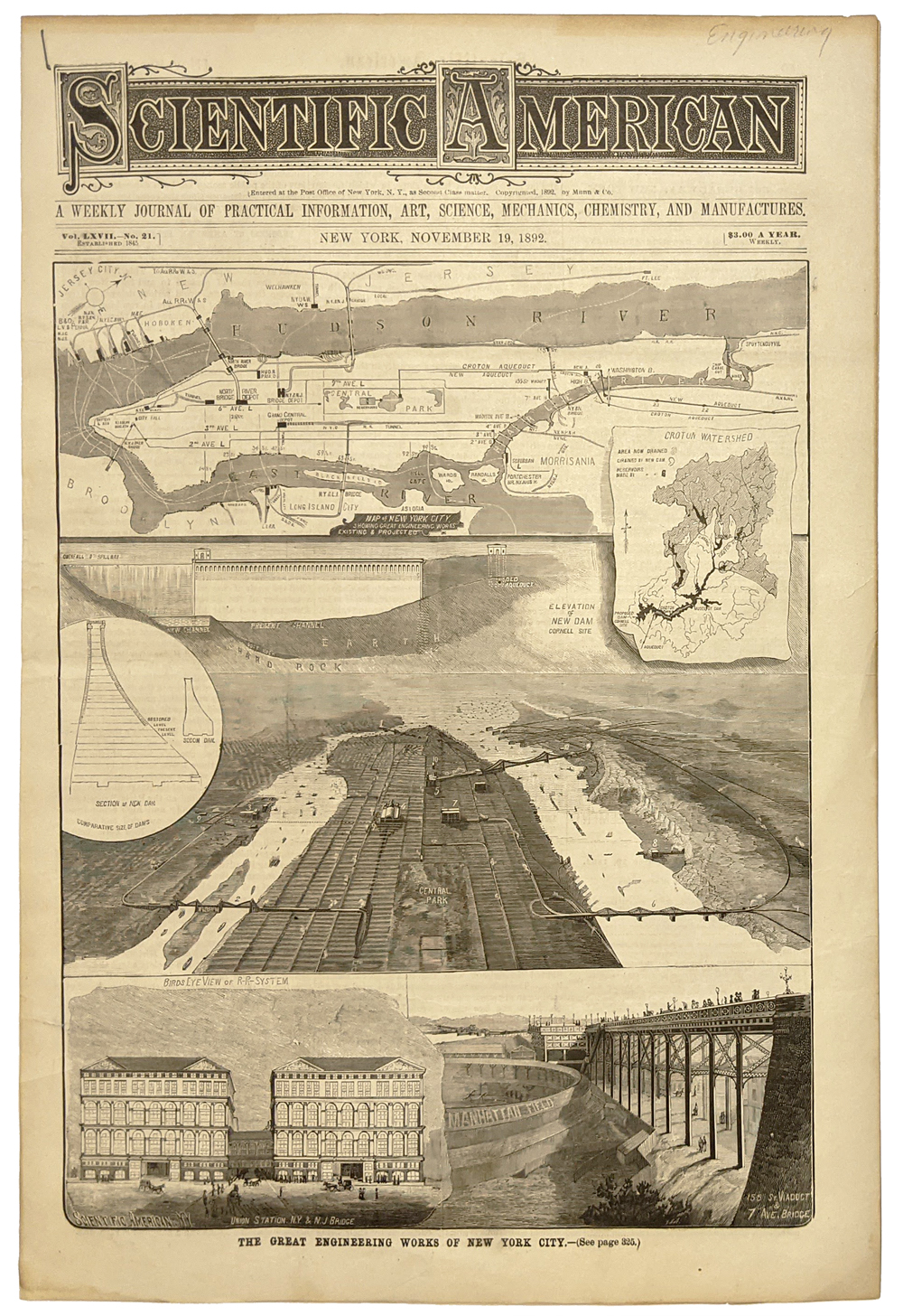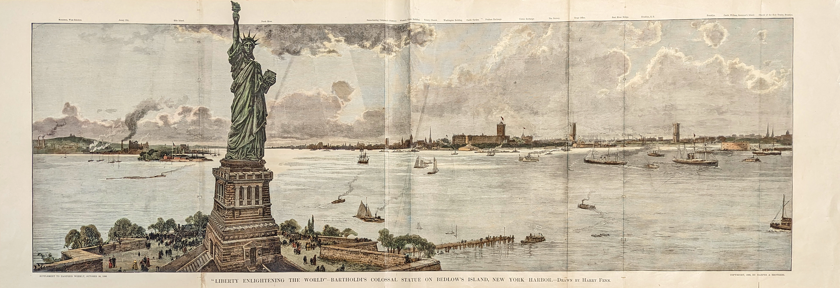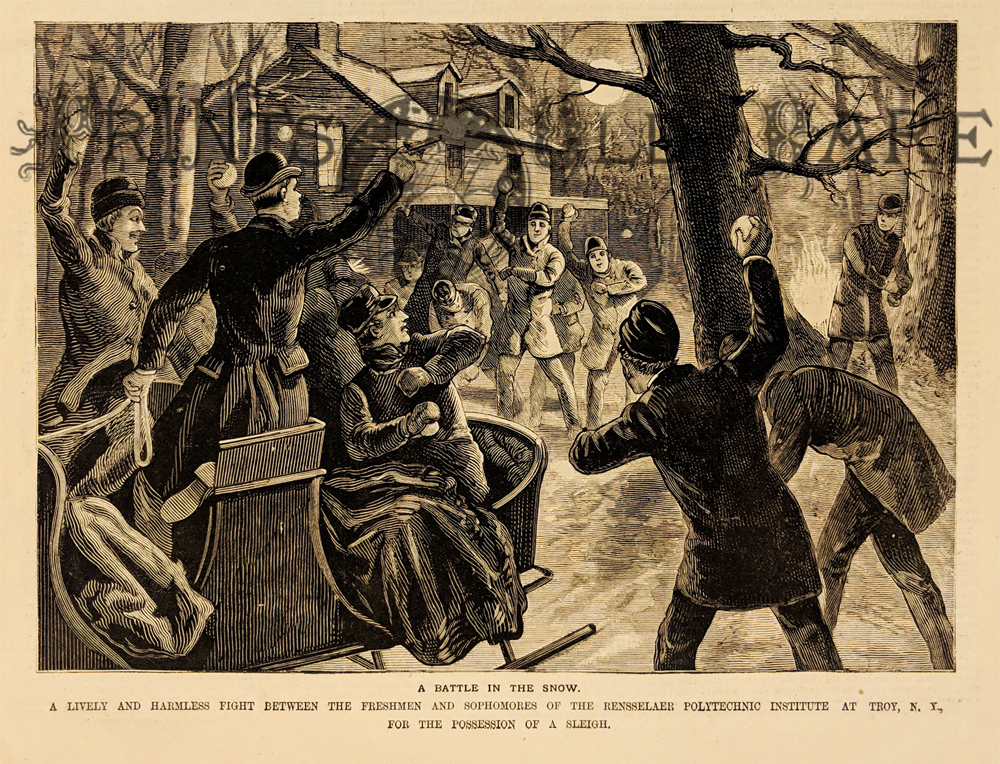 ![]() 303NewYork: 1875 Gray's Map of New York. Detailed map showing Counties, Railroads, Canals, Roads, and Topographical information. 3 insets showing Niagara River & Vicinity, Vicinity of New York, and Map of the Hudson River from New York to Saratoga Springs. Hand colored, lithograph. 16 x 25 in. $120 ![]() 304NewYork: Road Map – Ny State. 1919 AAA. Main Traveled routes – connections to other States and Canada. 22 x 26 in. $60 ![]() 305NewYork: Rennsselaer Institute, Troy, N.Y. 1884. Freshmen vs. Sophomore snowball fight. The National Police Gazette. Students fight for possession of a sleigh. Wood engraving. 7 x 9 in. $45 ![]() 306NewYork: “Wild Animals of New Netherland” 1851 steel engraving of an earlier fanciful view of unicorns, eagles, moose all thought to inhabit today’s New York State. 5 x 7 in. $50 ![]() 307NewYork: Trenton Falls – Secretary of State and the Diplomatic Corps. 1863. Meeting during the Civil War. Hand colored, wood engraving. 11 x 16 in. $80 ![]() 309NewYork: Saugerties – Ulster County. Sheffield Paper Mills on the Hudson River. 1880 hand colored lithograph. 12 1/2 x 15 1/2 in. $80 ![]() 312NewYork: Cornell Crew 1913. Ithaca, NY. 14pp stapled booklet celebrating the victorious Cornell University – photos, statistics and names. A little water damage appearing front cover, staples rusting. 5 1/4 x 8 $40 ![]() 313NewYork: 1873 U.S. Coast Survey nautical chart of Plattsburgh and Cumberland Bay Lake Champlain New York. Showing the inland detail with important building, streets, and property lines shown; depth soundings as well as notes on reefs and shoals. Also includes the course of the Saranac River as it passes south of the city and route of the Whitehall and Plattsburgh Railroad. 21 3/4 x 23 1/2 in. $250 ![]() 314NewYork: History of New York State by Alexander Hulk and Paul M. Paine 1929 – Insets of Niagara and Old New York, Hudson and Mohawk Rivers. Printed in Color. 22 7/8 x 31 1/8 in. $150 ![]() 316NewYork: Map of the Railroads of the State of NY 1858 by Van Rensselaer Richmond, State Engineers. Hand colored lithograph detailed topographic showing railroads in operation in progress and proposed. Also shows canals. Beautiful and rare map. **Has been archivally mended. 24 x 30 1/2 in. $650 ![]() 317NewYork: A chronographically map of the Province of New York. 1849 (1779) Hand colored lithograph. Shows land grouts, property ownership, roads, etc. 27 ½ x 37 in. $175 ![]() 318NewYork: Map of the History of New York 1928 by Alexander Flick and Lance M. Paine. Colorful map depicting historical locations all over the state. Inset of Manhattan, Niagara, and Long Island. Lower left corner has been patched and small piece of bottom border has been archivally mended and/or patched. 21 x 29 in. $150 ![]() 319NewYork: Rare New York Map 1817 Lower Manhattan North to 30th St. Shows tip of Brooklyn, Streets, Locations, bits of Jersey City and Hoboken. Hand colored lithograph. 8 1/2 x 8 1/4 in. $225 ![]() 320NewYork: Scientific American. Engineering Works 1892. Showing bridge, canal, aqueaduct, freight line, water supply, RR system, plus includes article. 11 x 16 in. $45 ![]() 321NewYork: 1864 Johnson's Map of New York and the Adjacent Cities. Showing streets, buildings, parks, islands, ship works, ferries, rail lines, etc. Inset of the north part of Manhattan, "Continuation of the City & County of New York on a Reduced Scale". Hand colored lithograph. *Minor foxing. 16 x 26 in. $275 ![]() 322NewYork: 1855 Colton's Map of New York and the Adjacent Cities. Large double page showing parts of Brooklyn, Upper Manhattan, Jersey City, Hoboken. Streets, rivers, docks, parks, basins and other places of interest shown. Hand colored lithograph. 16 5/8 x 26 1/4 in. $315 ![]() 323NewYork: 1876 Gray's Map of New York. Large double page map showing counties, cities, roads, railroads, sounds, canals, etc. Insets of Niagara River and Vicinity, Vicinity of New York and Map of Hudson River from New York to Saratoga Springs. Hand colored lithograph. **Minor foxing / water stain. 17 1/4 x 27 in. $150 ![]() 324NewYork: Massive fold out of New York Harbor. "Liberty Enlightening The World - Bartholdi’s colossal statue on Bedlow’s Island, New York Harbor.” 1886 Supplement to Harper's Weekly. Hand colored, wood engraving. **Center back has been reinforced; staple removal holes are also visible left and right quadrents of the fold. See picture. 15 7/8 x 45 5/8 in. $700 ![]() 325NewYork: Wards and Police Precint Map 1871. County of New York. Locations of 32 Station houses shown. Very good condition. 16 5/8 x 20 1/8 in. $350 ![]() 326NewYork: 1835 Chart of map of the County of New York. Copper engraving. Showing Randel's Island, East and Harlem Rivers, Long Island Sound and Part of Great Barn. Edwin Smith, City Surveyor. *Matted. 12 1/4 x 11 in. $150 ![]() 327NewYork: Birdseye of Greene, N.Y. Original 1890 lithograph in Chenango County, depicting of each structure. 39 keys to named locations, Route of Chenango River. **Has been archivally mended/patched along some of the borders. 15 5/8 x 25 3/8 in. $400 ![]() 328NewYork: Sidney, N.Y. 1887. L.R. Burleigh. Key denotes churches, schools, hotels, offices and railroads. Lithograph. **Minor staining/foxing top border. 16 3/4 x 23 in. $400 ![]() 329NewYork: The Terrible Disaster at the New York approach of the East River Bridge, May 30th. The Desperate Struggle for life. 1883 Frank Leslies. Wood engraving. 10 x 15 1/2 in. $60 ![]() 251nyc: New York World's Fair Picture Map - 1963 Color Herman Bollmann color picture map for the New York World's Fair. 43-1/2 x 33-1/2 in. $1,500 ![]() 301NewYork: New York & Vicinity by FW Beers 1867. Large format. Shows railroads, counties, towns, and roads. Very good condition. 29 ¾ x 28 in. $495 ![]() 302NewYork: "Scenes at Chautauqua." - Drawn by C. Graham. Shows 9 scenes - The Museum, Hall of Photography, Viewing Model of Jerusalem, Fairpoint Landing, Sectional view of Pyramid, In the Outlet, A Rustic