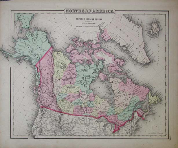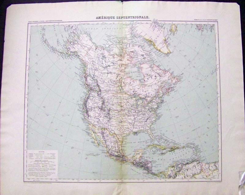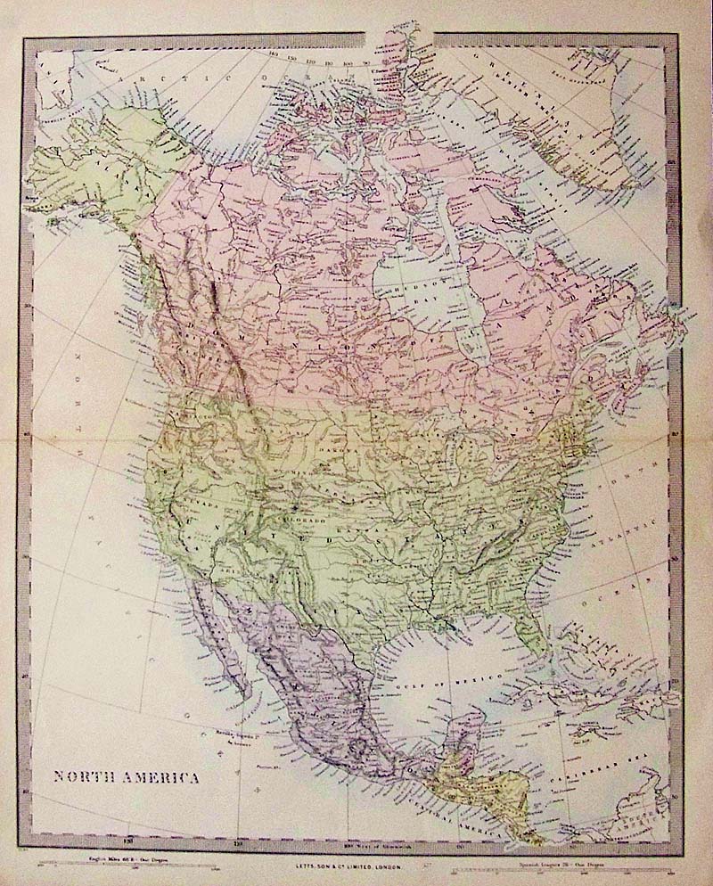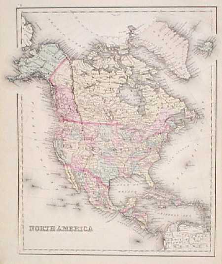 ![]() 032nam: c.1840 Map of North and South America. In outline color. Shows major cities and rivers. By F.P. Becker & Co. Genuine antique map. 8x10-1/2 in. $100 ![]() 100nam: 1820 Geographical, Statistical and Historical Map of America Carey - Nicely illustrated with original pastel colors, two separate maps of North and South America printed on one sheet. Original hand color differentiates nations and claims. As noted on the map, this is second Philadelphia edition from 1817 London edition. The North American map shows the routes of Columbus and Cortes. Early Canadian border with United States. Several Indian tribal regions including "Long Hair Indians". Alaska as "Russian Settlements". South America with Pizarro's track. The map is framed on three sides with extensive text in English full of interesting statistics and history. Published in Philadelphia. Published by M. Carey and Son 1820, Philadelphia printed from the 1817 edition. Condition: Very good, some foxing and water stains on lower right text and margin, small margin at top. size 21 x 16.5, map images 15 x 8.5. $500 ![]() 222nam: North America, Colton 1855 - A steel engraved and original colored map of North America, from Colton's General Atlas. A wonderful “time capsule map” showing Canada as British Possessions, Oklahoma as Indian Territory, one Dakota, Alaska Territory and a good section of the Artic including Greenland. Published by J.H. Colton and Company at No. 172 William St. New York in 1857. This is from the first edition of Colton's General Atlas, the first being a two volume issue in 1855. This historic map of North America shows many details of towns, roads and waterways in a period just before the US Civil War. Condition: Very good, wide margins, light browning on the edges. size 12 x 15 image $200 ![]() 223nam: North America, Letts and Sons, 1883 - A nice and decorative lithographed map with original color published in London by Letts and Son & Co. Limited. Dominion of Canada stretches across the country, the Dakotas are one, Oklahoma doesn’t exist yet and the map has nice pastel coloring as with most Letts maps. Thomas Letts took over the family owned publishing company in 1835 and was joined by his son Charles in 1870 when the Limited company was set up. Condition: Very good printed on fine paper, fold in middle, has slight marginal soiling. size 14 x 17.25 image $120 ![]() 224nam: North and South America, Becker and Patentees 1850 - An unusual small, omnigraph engraved map of North and South America, by Francis Paul Becker and Company, Patentees circa 1850 for a small atlas. Contemporary outline color, of each continent, with details of Indians and some countries, no California. Condition: Good, this map was published with narrow borders particularly on the left side, some light foxing on image and browning on margin edges. size 8.5 x 9.5 image $90 ![]() 225nam: Carte Du Nouveau Continent, de Vaugondy, 1749 - A copper engraved black and white map with the North-South and East-West axis at oblique angles to the continents. In North America, the Pacific Northwest coastline is not depicted and a series of rivers and lakes make up a Northwest Passage. At upper right, inside the neat line is "2. e Carte page 206." This map is given a full-page illustration in Pedley's book on page 94 and is discussed in her chapter "Maps that Illustrate and Teach." Condition: Good, water stains on left margin into image, two folds. size 7 x 8.5 image $120 ![]() 033nam: 1868 Rare Stieler's Hand Atlas of North America outlined in color with inset of the Plateau of Mexico bottom left corner. 16 x 13-1/2 in. $250 ![]() 035nam: 1819 French mapof North America which shows the Indian Tribes and is titled, "America Settentrionale." 18 x 14 in. $180 ![]() 101nam: 1875 Map of North America by Gray. Interesting map, with original hand coloring, from O.W. Gray's world atlas of 1875. Each state in the United States and Mexico is separately colored. Canadian provinces and Central American nations are colored as well. Cities, towns and geographical features are shown throughout the continent. Very attractive map which would look great in a frame! 14x17 in. $140 ![]() 200nam: 1855 North America Map by Colton. Beautiful, engraved map with original hand coloring, from the 1855 edition of J.H. Colton's world atlas. Alaska is labeled as "Russian America," and Canada is called "British Possessions." Most of the western United States is divided into large territories. Very good condition. 17-1/2 x 14-1/2 in. $250 ![]() 201nam: 1855 Canada, Northern US Map by Colton. Beautiful, engraved map with original hand coloring, from the 1855 edition of J.H. Colton's world atlas. Title of the map is "British, Russian and Danish Possessions in North America." The main focus is on Canada, which is labeled as "British Posessions." Alaska is called "Russian America." Most of the Northwestern United States is divided into large territories. Excellent condition. 16x18 in. $180 ![]() 202nam: Very nice early map of the Western Hemisphere. Published in 1844 by the Superintendence of the Society for the Diffusion of Useful Knowledge. 13.5x16 in. $160 ![]() 205nam: Hand colored engraving from J.H. Colton published in 1855. Map titled, Northern America British, Russian & Danish possessions in North America. 16.5x13.5 in. $180 ![]() 206nam: 1865 Hand colored engraved map of North America, Entered According to Act of Congress by J.H. Colton & Co., in the Clerk's Office in the District Court in the United States for the Southern District of New York. Top right of map shows part of Greenland and top left shows Alaska Territory. Backside of map shows the Population of the United States, From 1790 to 1880. 17 x 14 in. $120 ![]() 207nam: Rare 1896 Map of North America from Bacon's Geographical Establishment, London. Hand-coloured lithograph map. Caribbean Islands are very detailed and the United States are shown almost as they look today, although Dakota still has not split t
